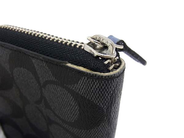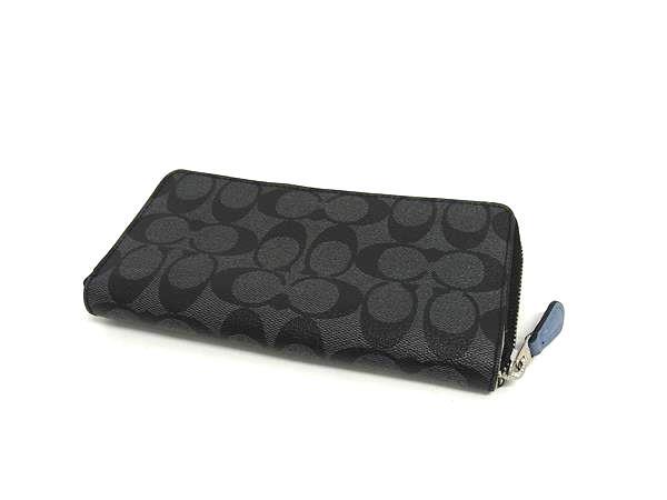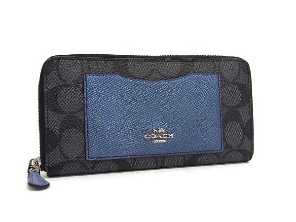 COACH コーチ シグネチャー レザー ラウンドファスナー 長財布 ウォレット 札入れ 小銭入れ ブラック系×ブルー系 DJ3649