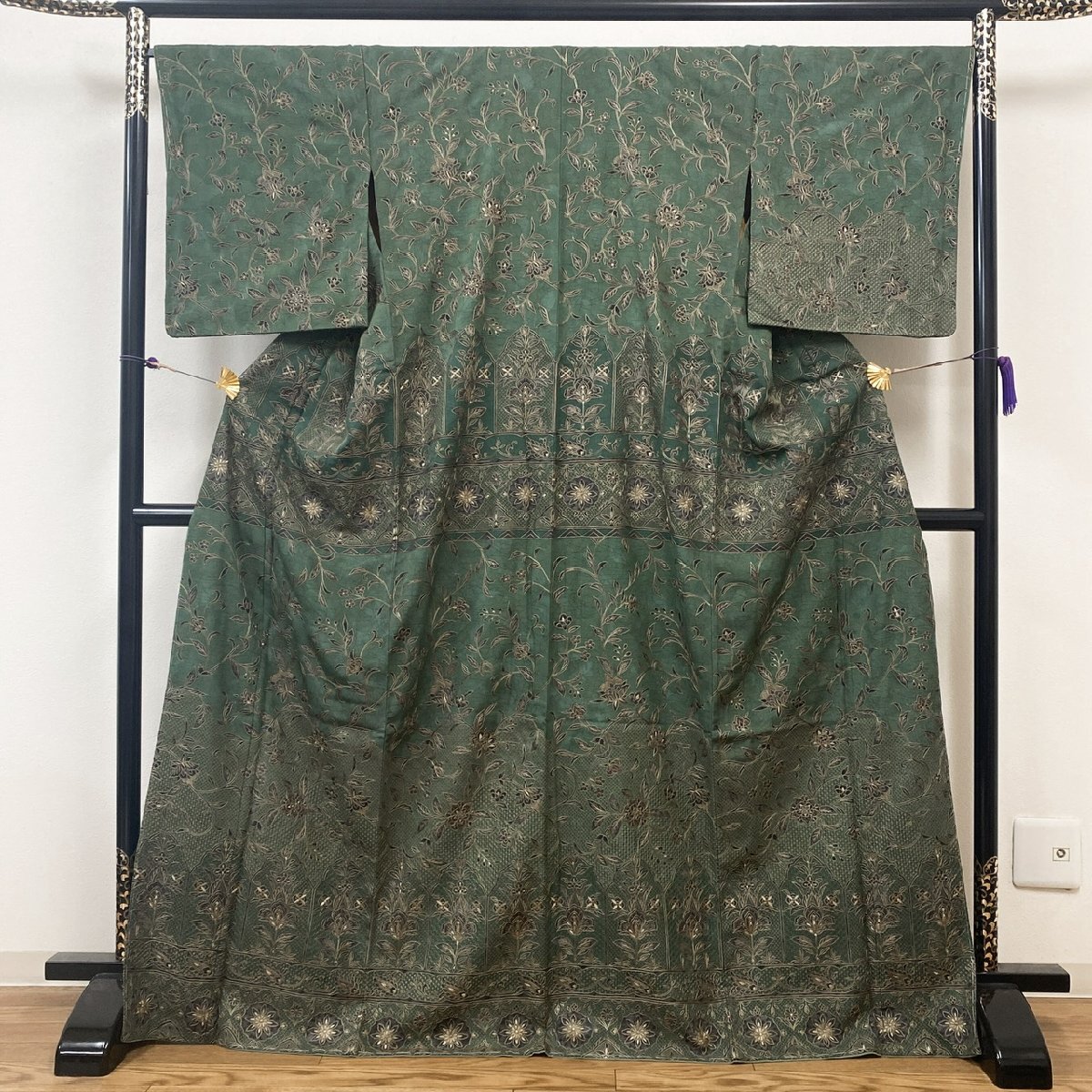 着物月花 三大総刺繍 仙頭刺繍 蘇州刺繍 相良刺繍 装飾花文様 訪問着 未使用品 正絹 さが美 ガード加工 ki6664