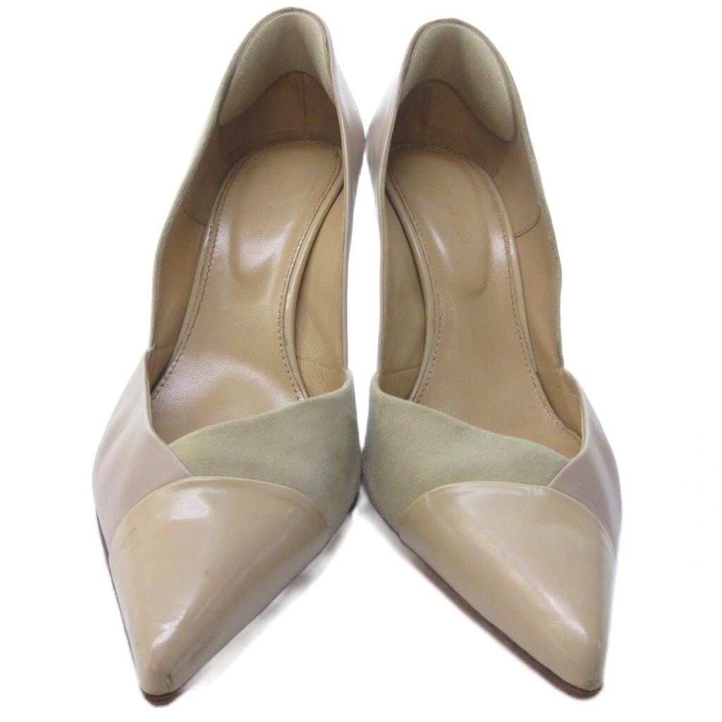 セルジオロッシ Sergio rossi レザー スエード ポインテッドトゥ パンプス ベージュ 38 約24cm IBO83