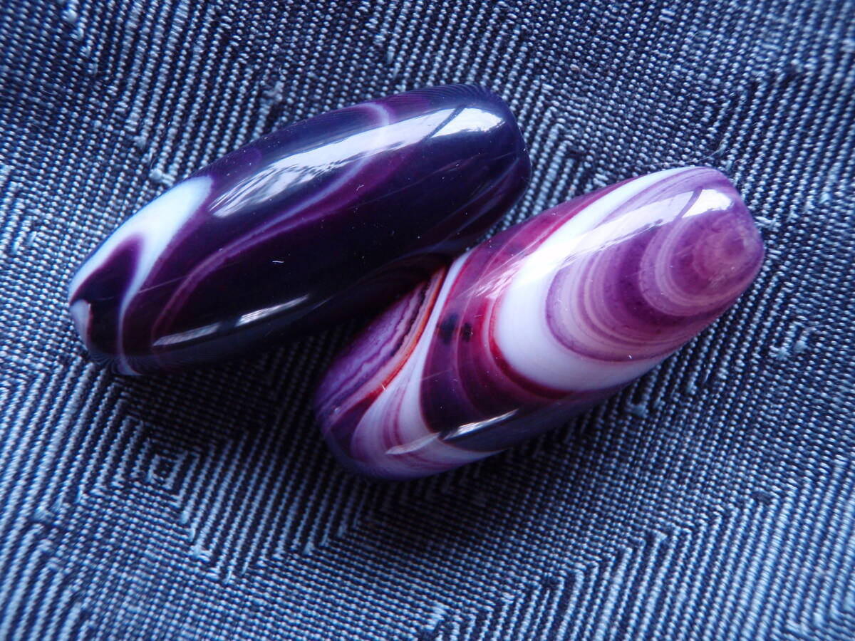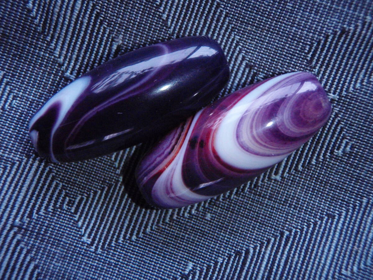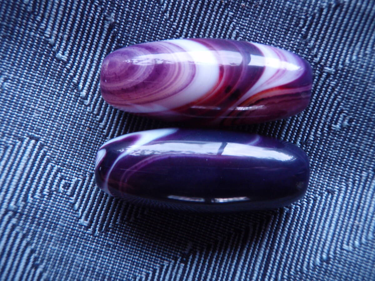 天珠 天然極品西蔵大粒紫色老天珠 2粒
