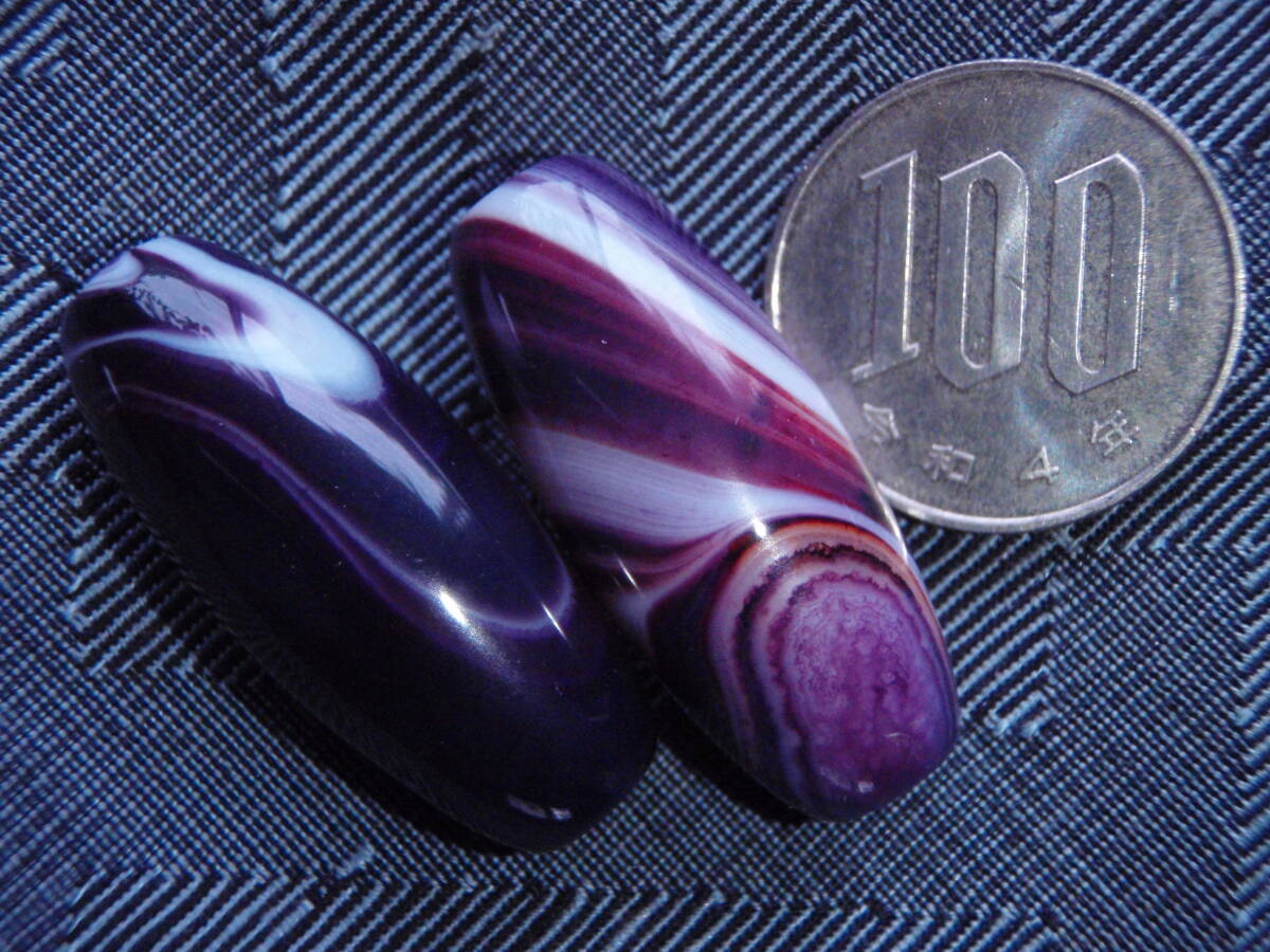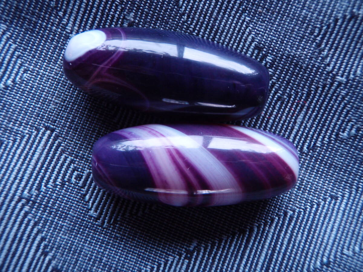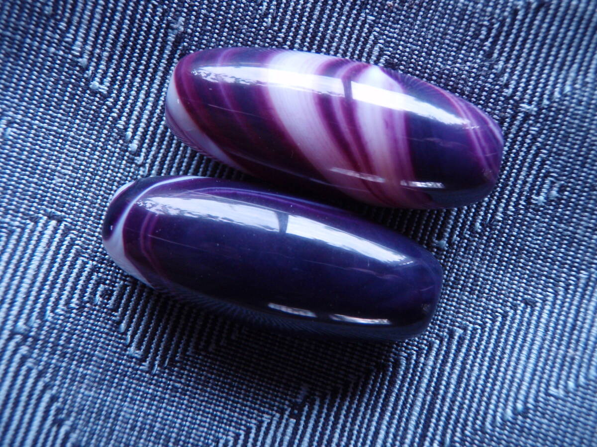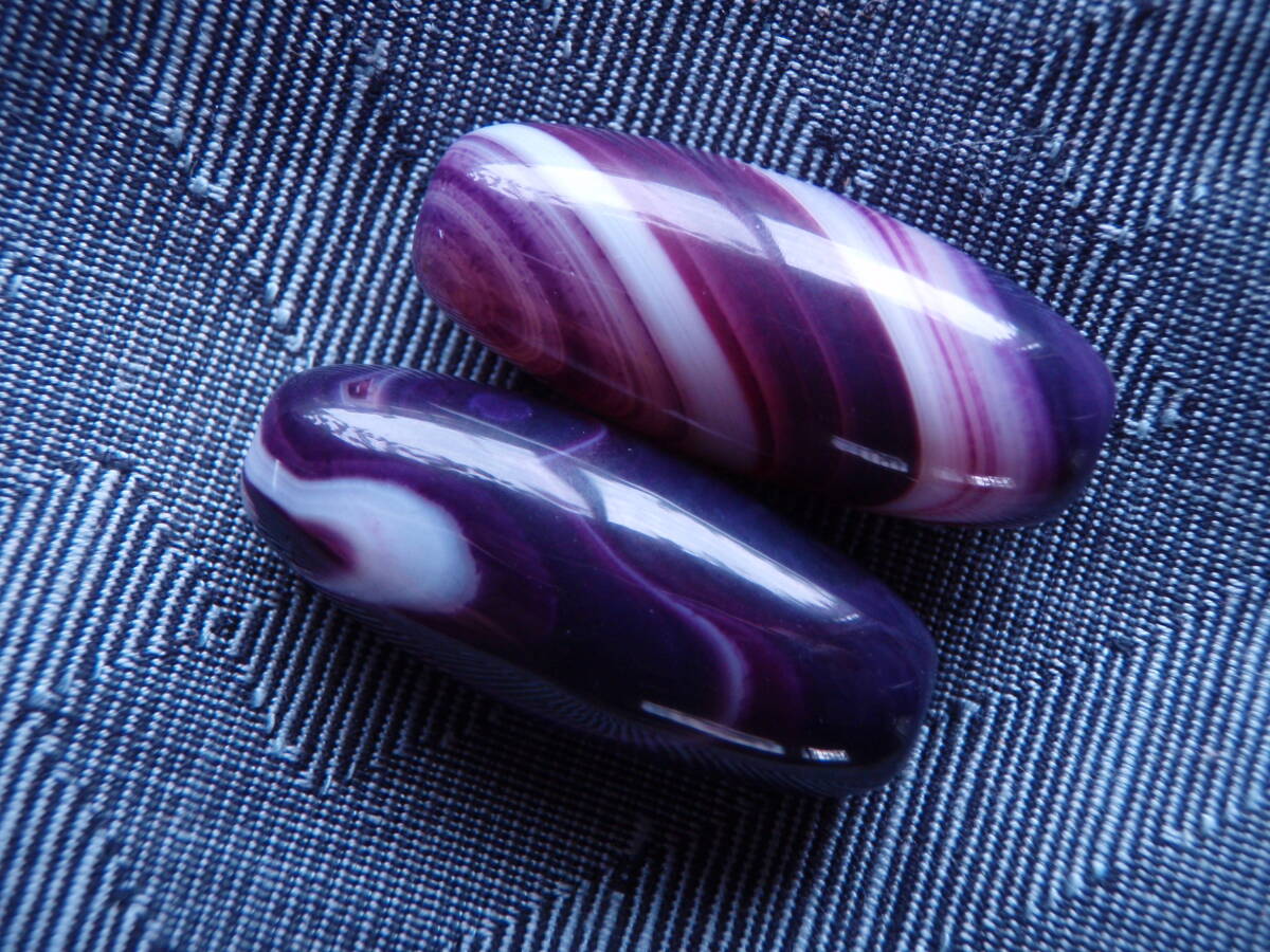 天珠 天然極品西蔵大粒紫色老天珠 2粒