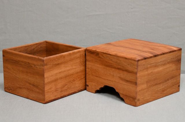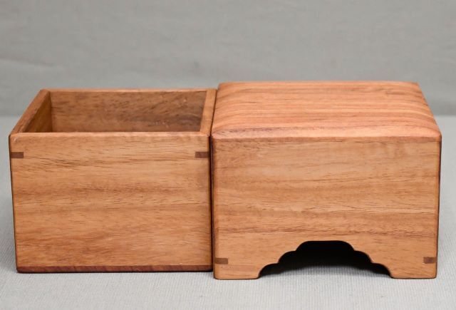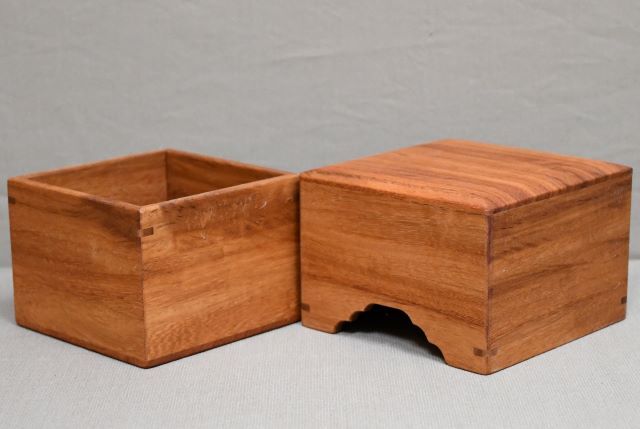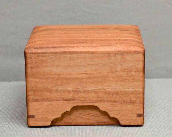 | 商品説明 | 本花梨の駒箱です。 天板は四方3mm前後落としゆるく全体に丸みを付けています 側板厚は約6mm、上板の厚みは8mm前後底板は5~6mm前後です。 上板・底板は枠にカギコミして枠に落とし込んでにして組んでいます.。 植物性グロスクリヤーオイル仕上げ。 サイズ W108 D108 H77 蓋の下り速度は2秒程度です。 *オイル仕上げですので漆仕上げ同様に木の感触が良いです。 | |