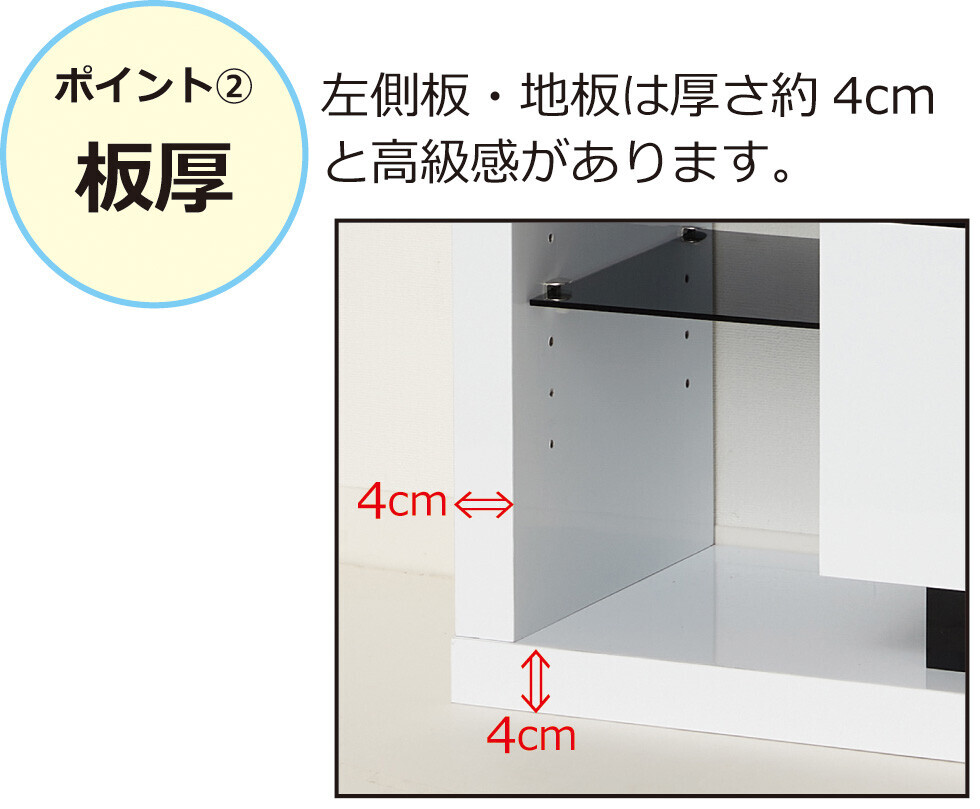 左側板・地板は厚さ40mmと高級感あり。
