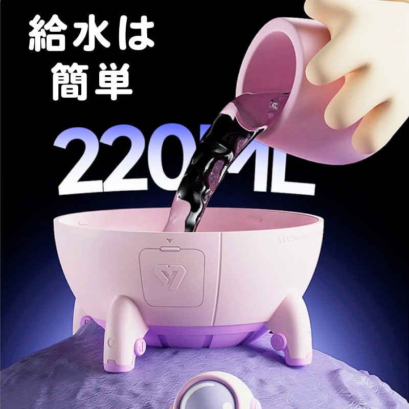 フタをあけて上から簡単に給水できます。水タンク容量は220mlと大容量。