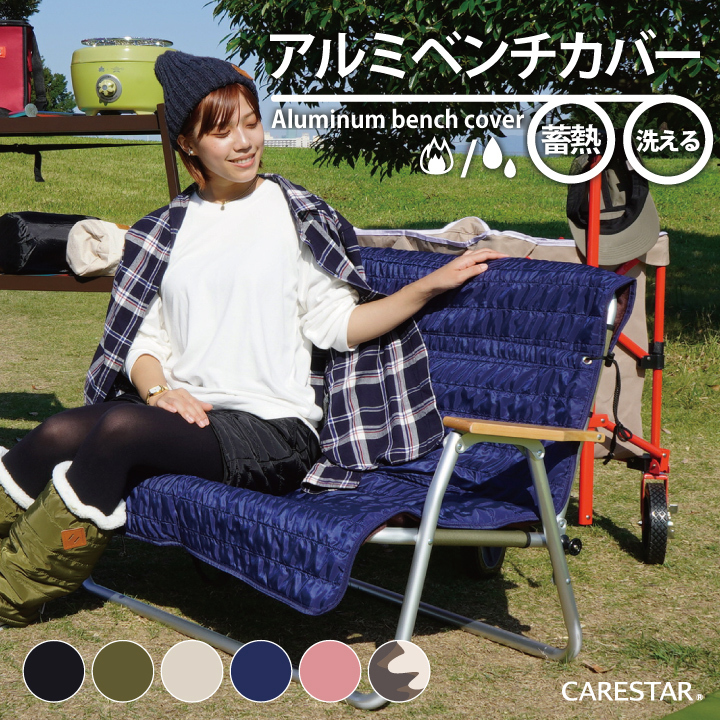 あったかい リバーシブル 背付き ベンチカバー ホットハグ 特殊熱収集発熱素材使用 ネイビー 簡単 アウトドア 椅子カバー 裏ボア CARESTAR