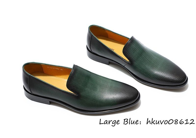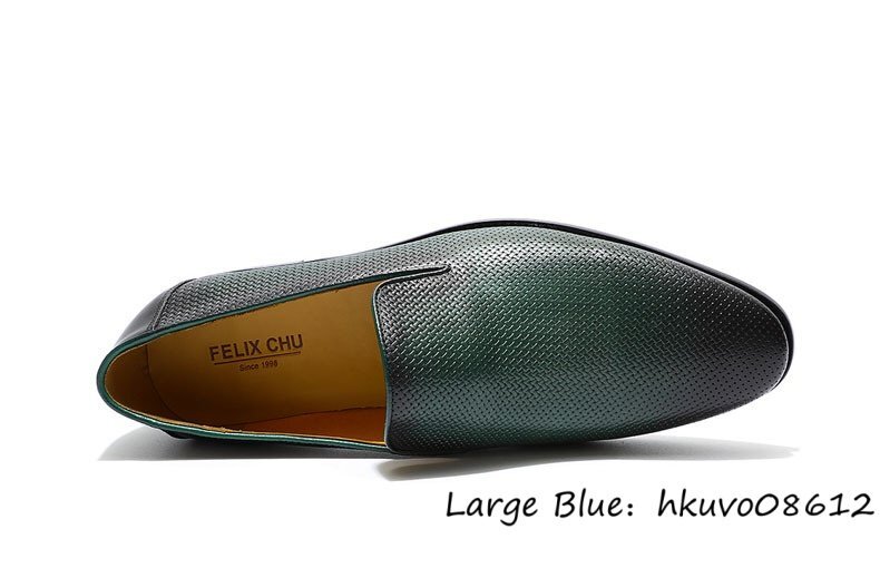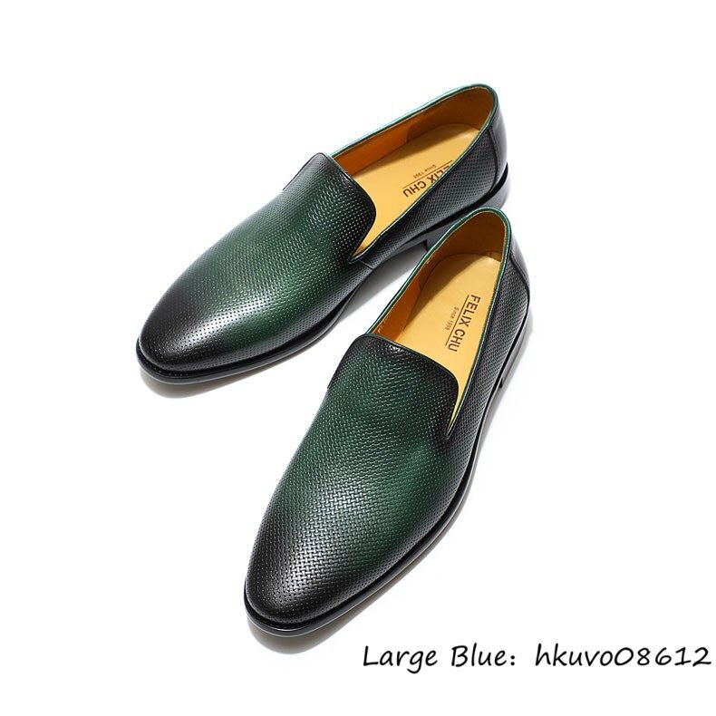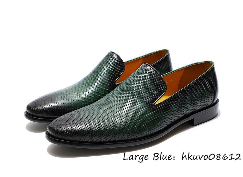 超希少★レザーシューズ メンズ 本革 通気性 透かし彫り 職人手作り ビジネスシューズ 牛革 紳士靴 革靴 通勤 パンプス グリーン 27.5cm