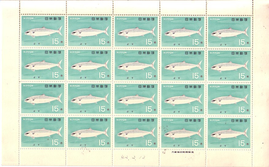 「ぶり」の記念切手です(15円切手X20枚)。送料は普通140円(普通便 複数同梱発送では180円)になります。