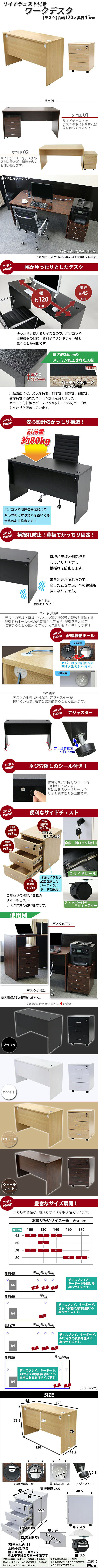 | 商品サイズ | ■本体寸法・・・デスク:約W120×D45×H73.5(cm) サイドチェスト:W約40×D約48.5×H約55.5(cm) ■梱包寸法(2個口)・・・デスク:約W128×D55×H13(cm) サイドチェスト:W約47×D約56×H約52(cm) |