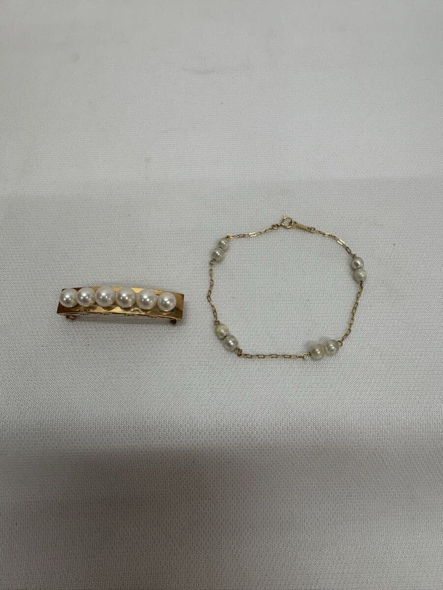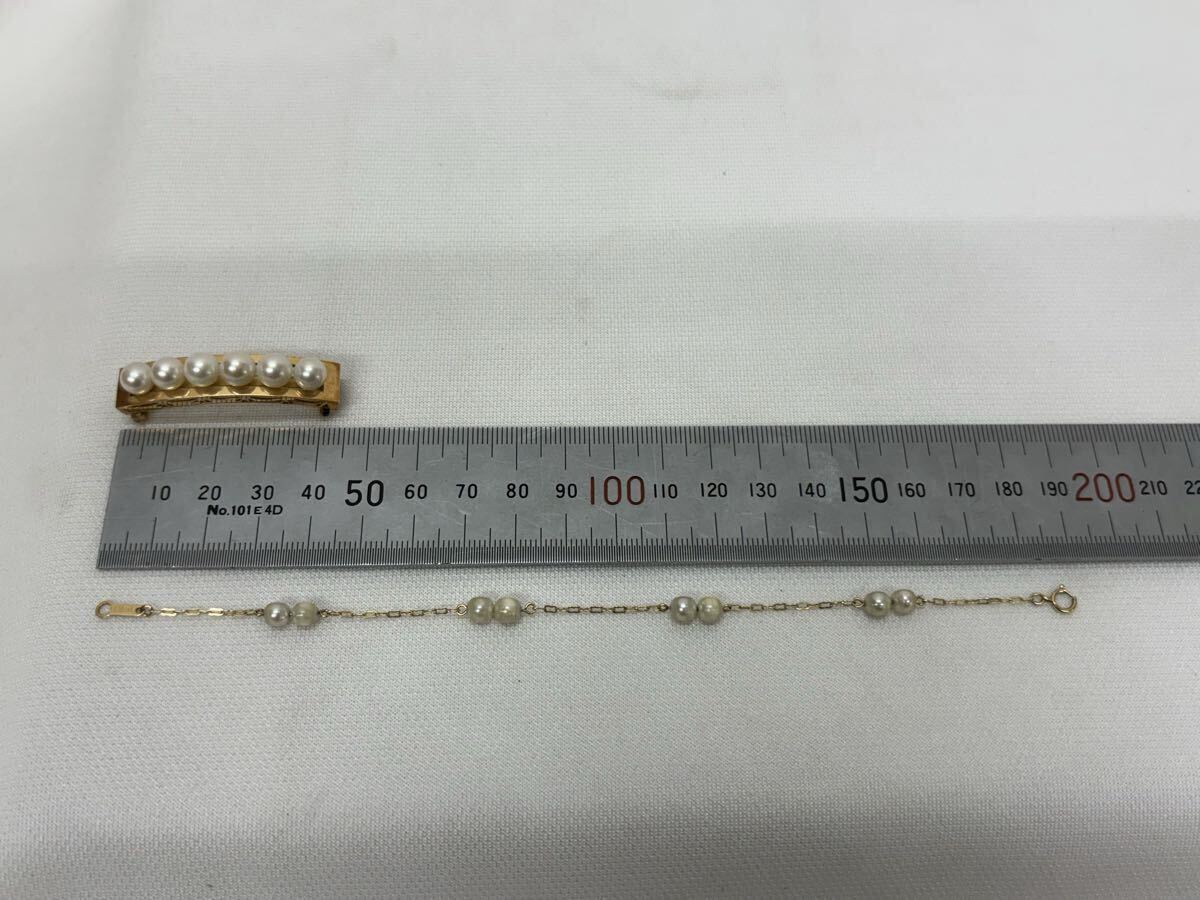 (1)K18刻印 帯留 ブレスレット 真珠 パール 合計約9g