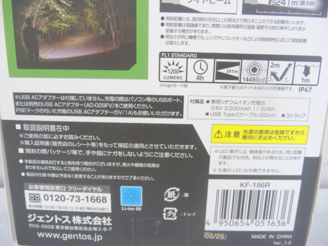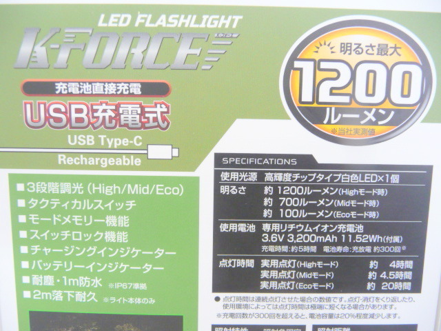 ☆新品/未開封 ジェントス Kフォース 1200ルーメン USB充電式 LEDフラッシュライト KF-186R 懐中電灯 耐塵/防水/耐久 (A11161)
