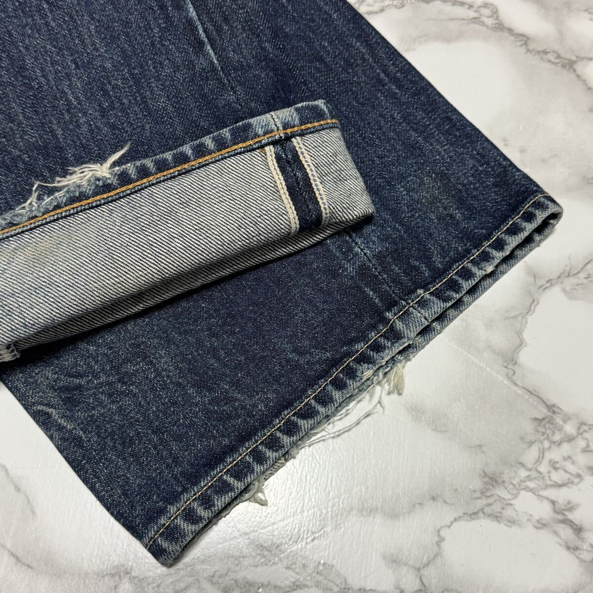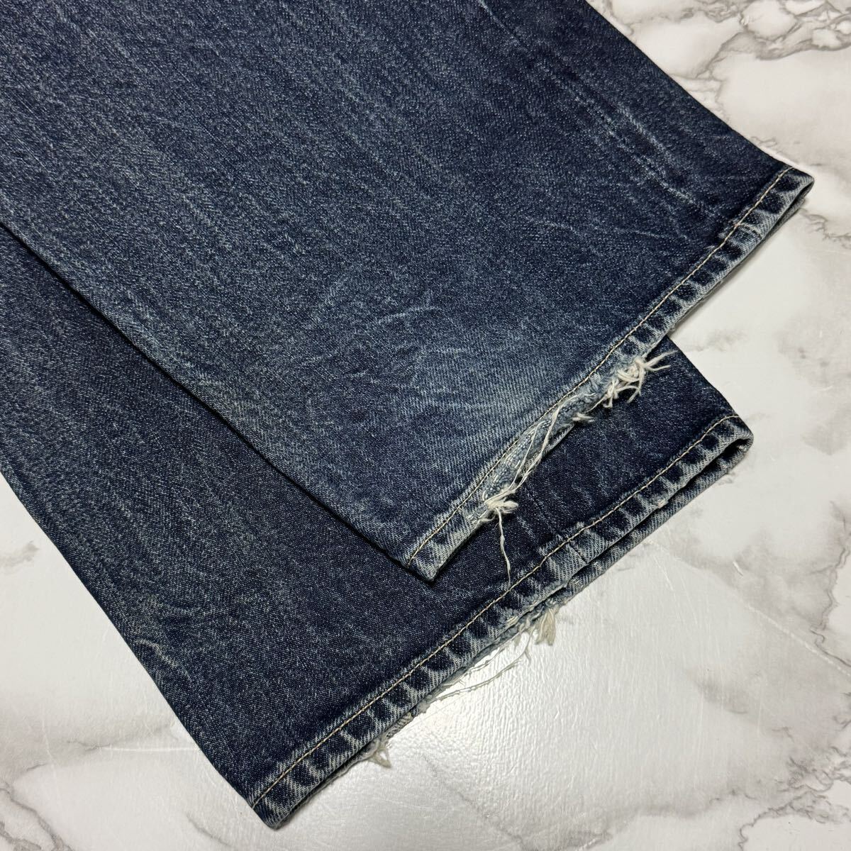 このジーンズは濃色の為、色落ちには時間を要するが、ヒゲやアタリがはっきりと表れる特徴を持っている。