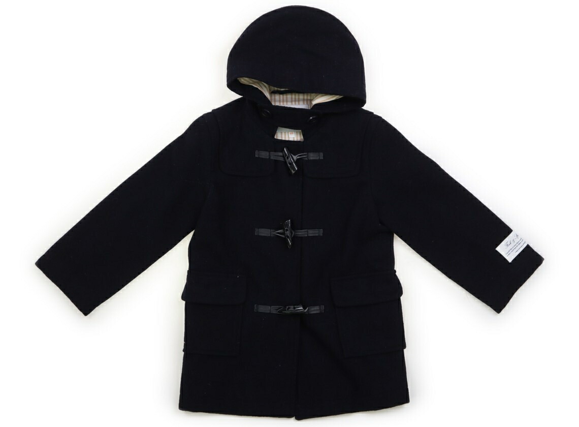 実際のサイズ表記は105です。表地は毛とポリエステルとその他配合生地、裏地はコットン生地です。フードは縫い付けです。白い毛羽の付着や毛玉等使用感はありますが、まだまだお使い頂けそうです。