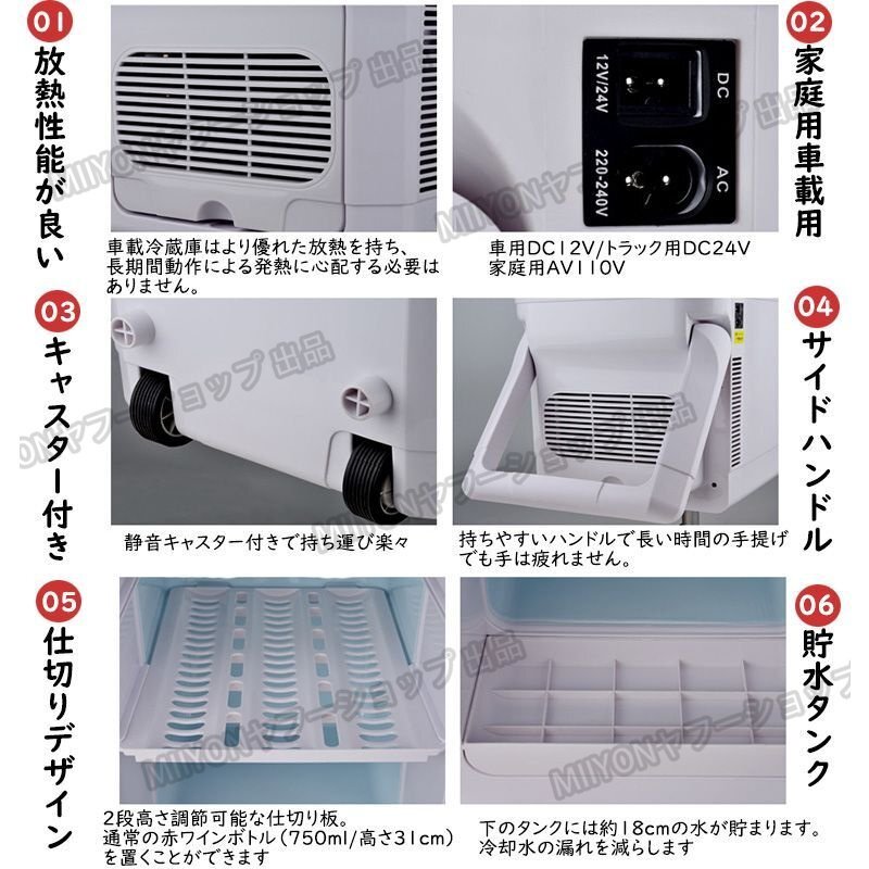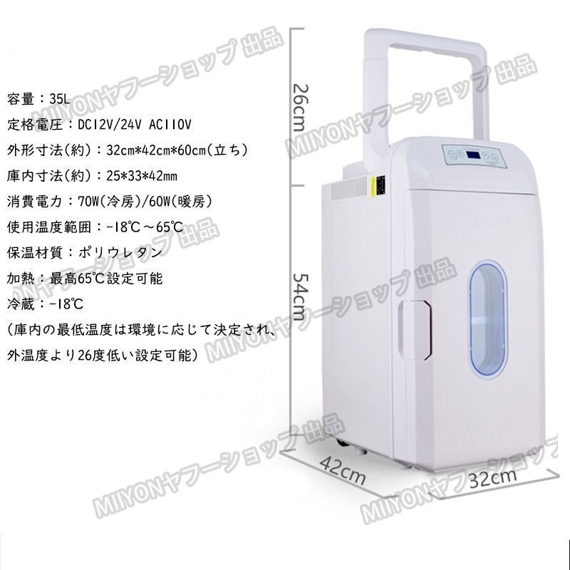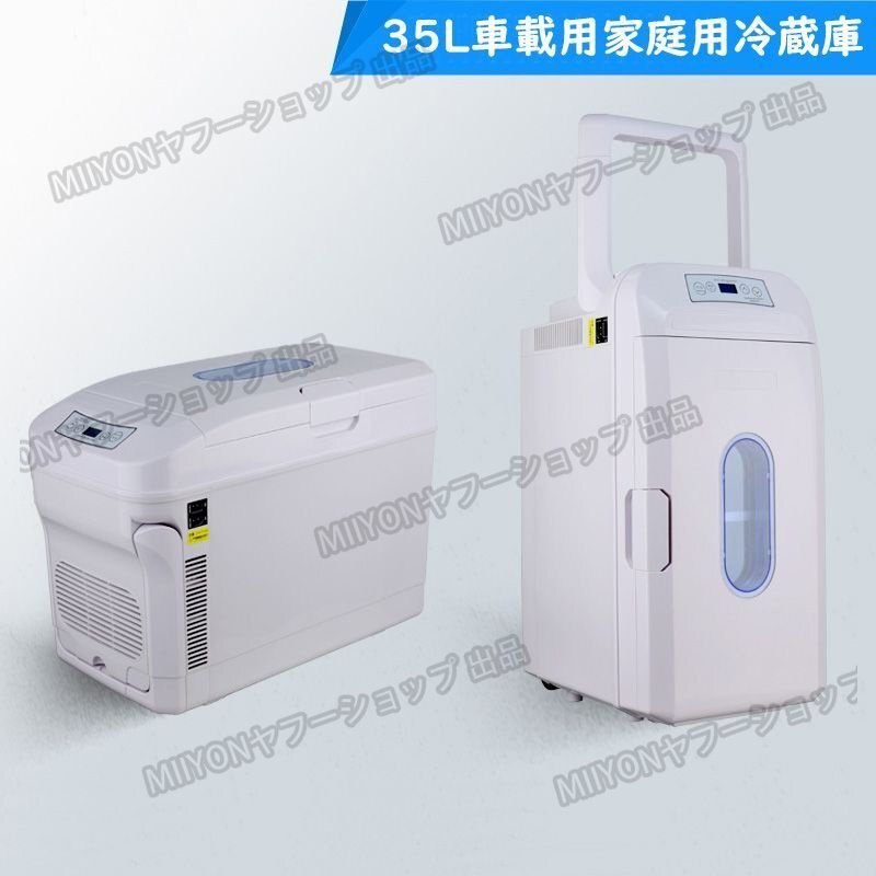 車載冷蔵庫 35L ポータブル冷蔵庫 -18℃~+65℃調整 持ち運べる便利 キャスター/ハンドル付 家庭車載用 立ち置き/平置き lhw064