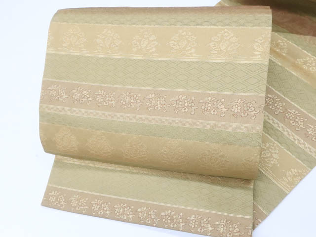 折山に薄汚れがございますが、リサイクル商品としては綺麗な状態のお品物です。 地色は薄カーキです。 1枚目の画像が近いお色かと思われます。 素材は化繊です。 |