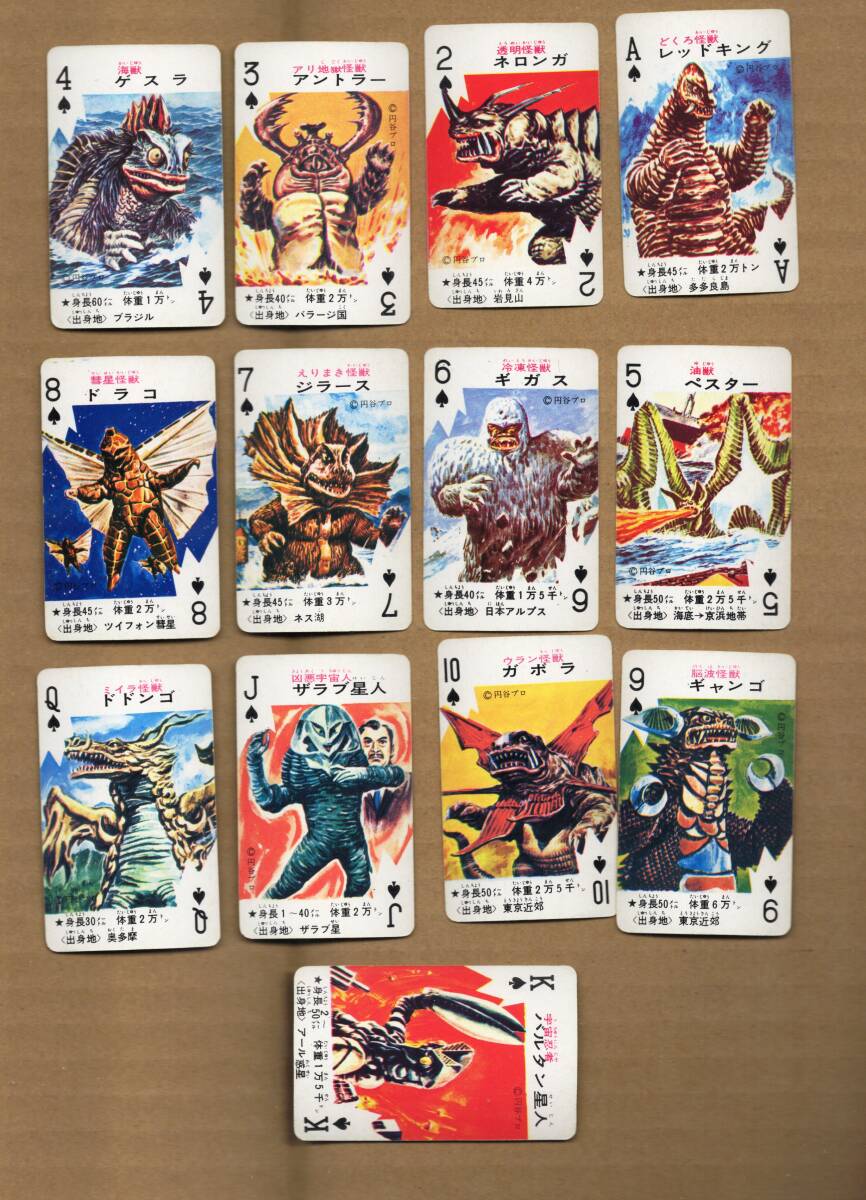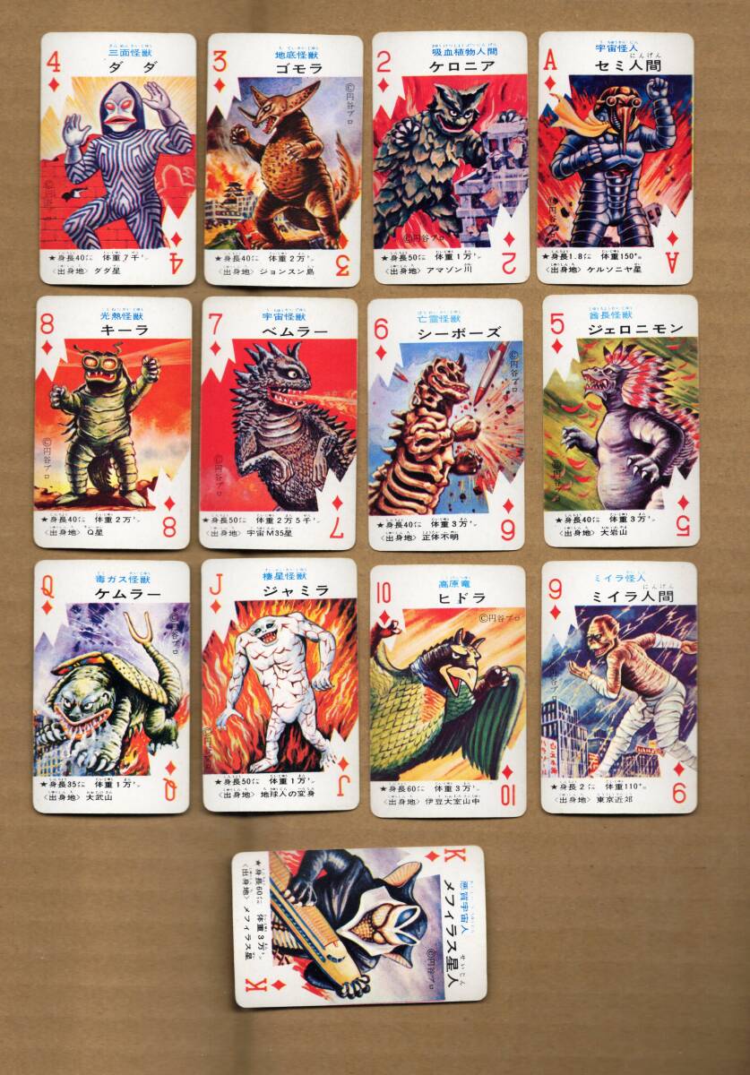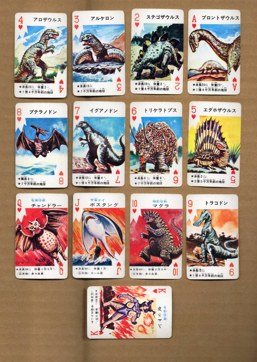 『怪獣トランプ』(第1次怪獣ブーム頃?の物・円谷プロ・ウルトラQ、ウルトラマン、ウルトラセブン、恐竜・パラゾール・白元本舗・非売品)