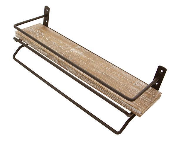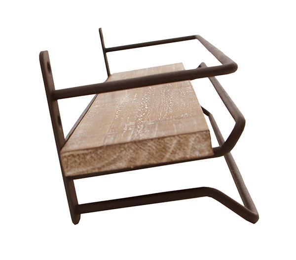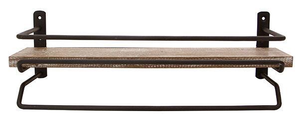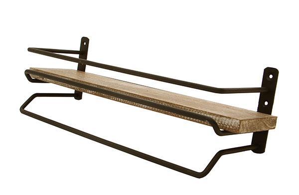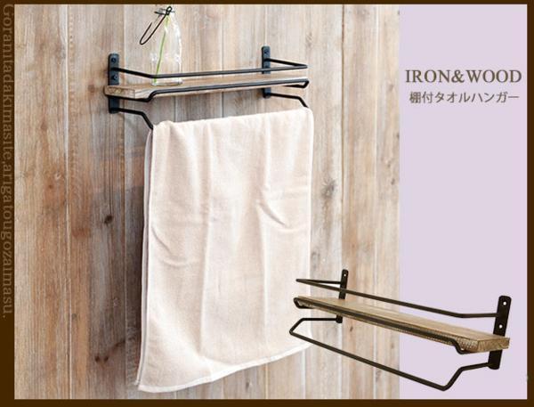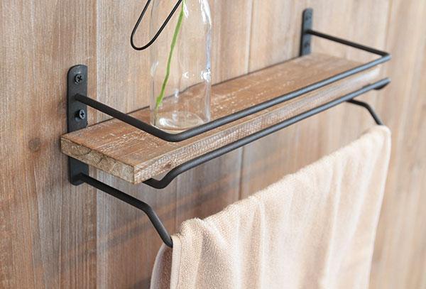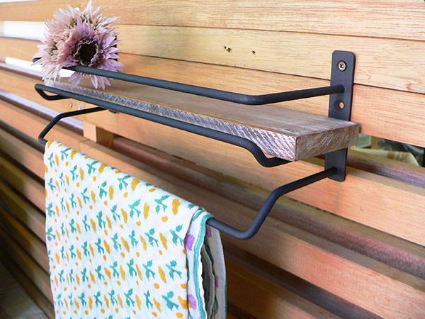 ◇古材の風合いを生かしたヴィンテージ風なタオル掛けハンガー。木のワイルドな質感と、クールなマット仕上がりのスチールの組み合わせにて、おしゃれに存在感を出しています。また、上には小物をのせることができます。