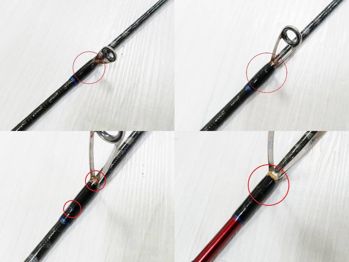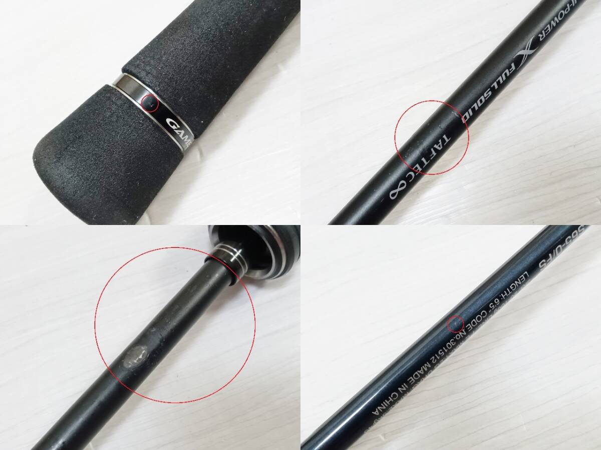 グリップはスクリュー部にわずかに細かいキズが見受けられます。(画像参照) ガイドは4番~8番ガイドのスレッド下部にクラック、スレッド内部にわずかに錆が見受けられます。(ガイドのガタツキは見受けられません。)(画像参照) ブランクスは数ヶ所、細かいキズが見受けられます。(画像参照) その他、明記しきれていない傷などがあるかもしれませんが、商品の仕様、状態は画像で確認願います。 ※なにぶん中古品につきノークレーム・ノーリターンでお願い致します。(状態に神経質にこだわる方は入札をお控え頂きますようお願いいたします。) |