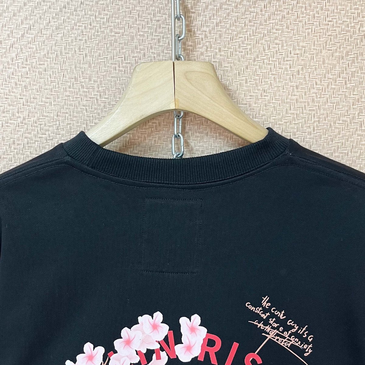 フロントはあえて無地でシンプルに仕上げ、ミニマルな美しさを表現。バックには、英字と花柄を組み合わせた繊細なプリントをさりげなくあしらい、控えめながらも目を引く上品なアクセントに。前後で異なる表情を楽しめる、贅沢なデザインが魅力です。