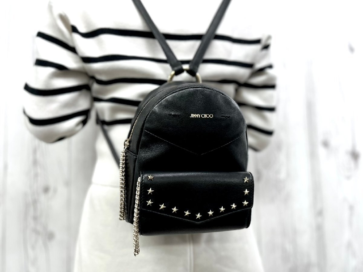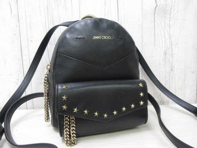 | 極美品 JIMMY CHOO ジミーチュウ キャシー スタースタッズ リュックサック バッグ レザー 黒 91868 | ||