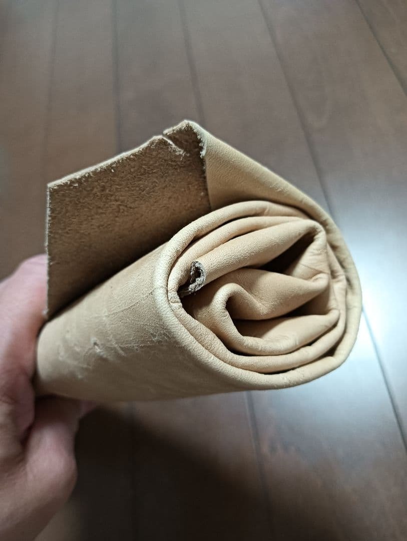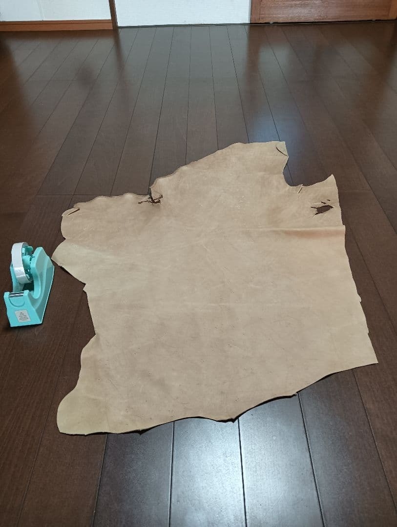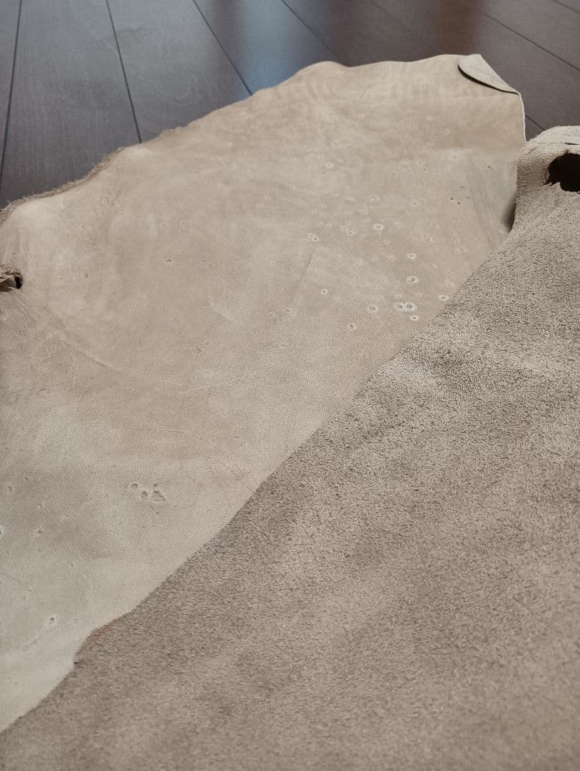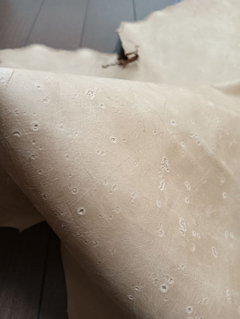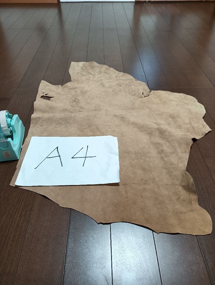 ベージュのレザー 大型サイズ革 皮 ハギレ 生地 素材 1114(E)