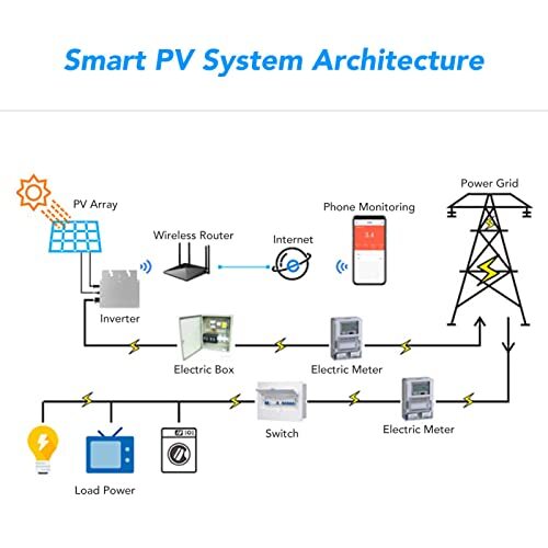 • 【 ワイヤレスオペレーション 】WiFiまたは携帯APPによる遠隔操作と監視が可能になり、全体的な効率が大幅に向上します。マイクロインバータの安全係数は、従来のインバータが直列に発生する超高圧電圧に比べて独特の利点がある。
