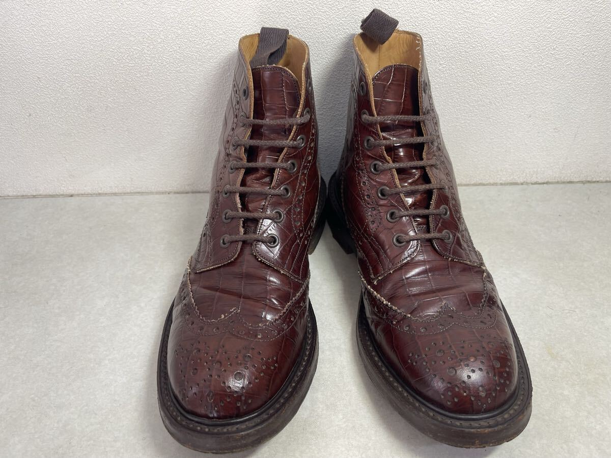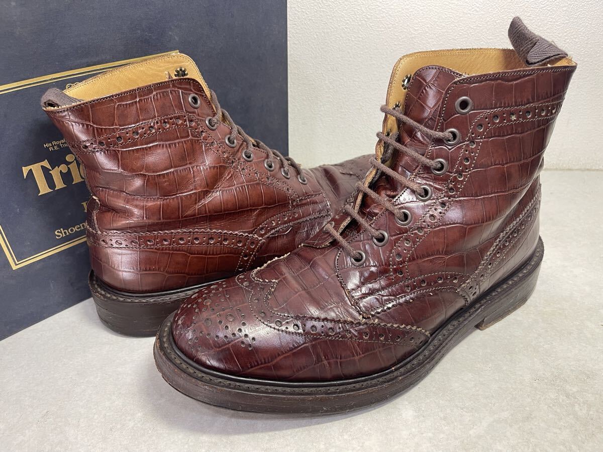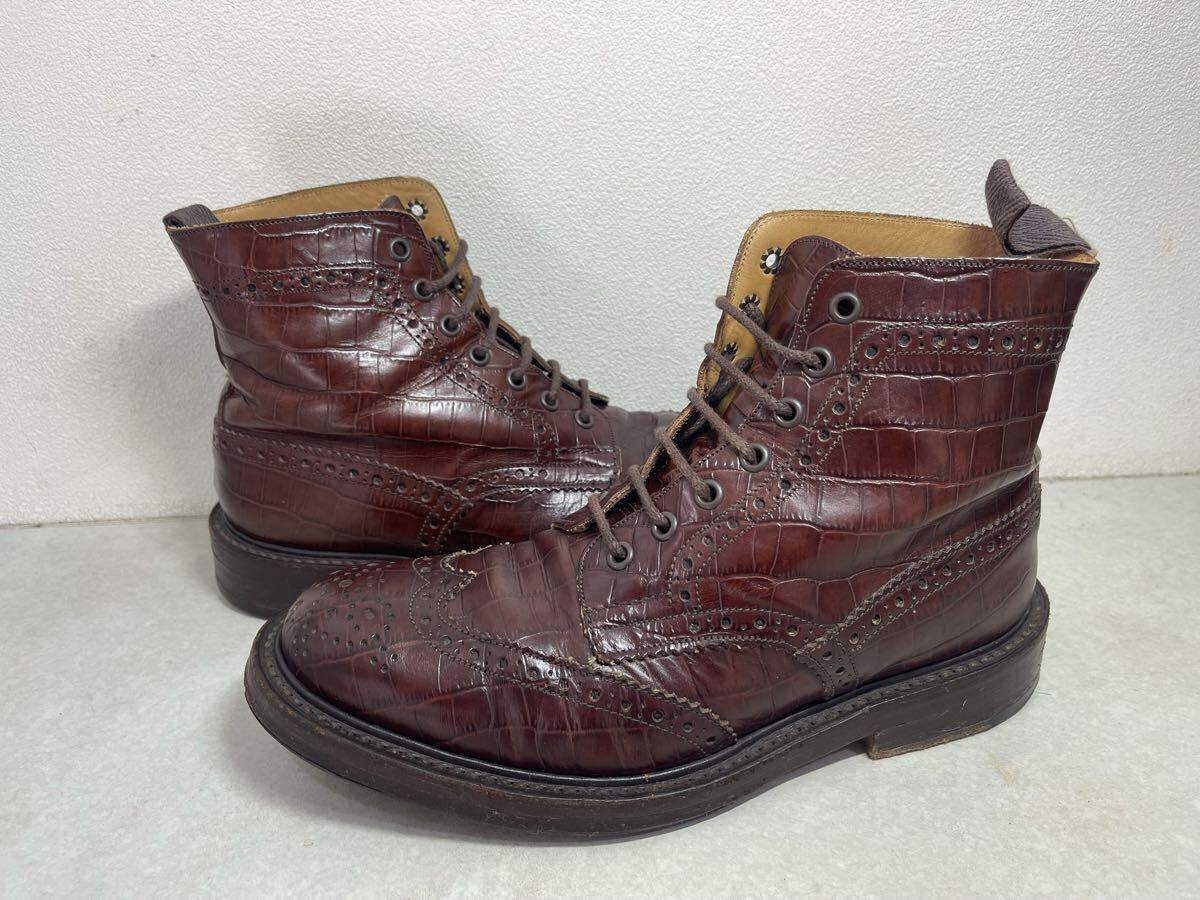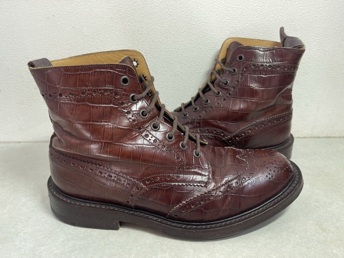 Tricker's トリッカーズ カントリーブーツ M2508 MALTON ウイングチップ モールトン クロコ型押し UK8 USED 箱付き