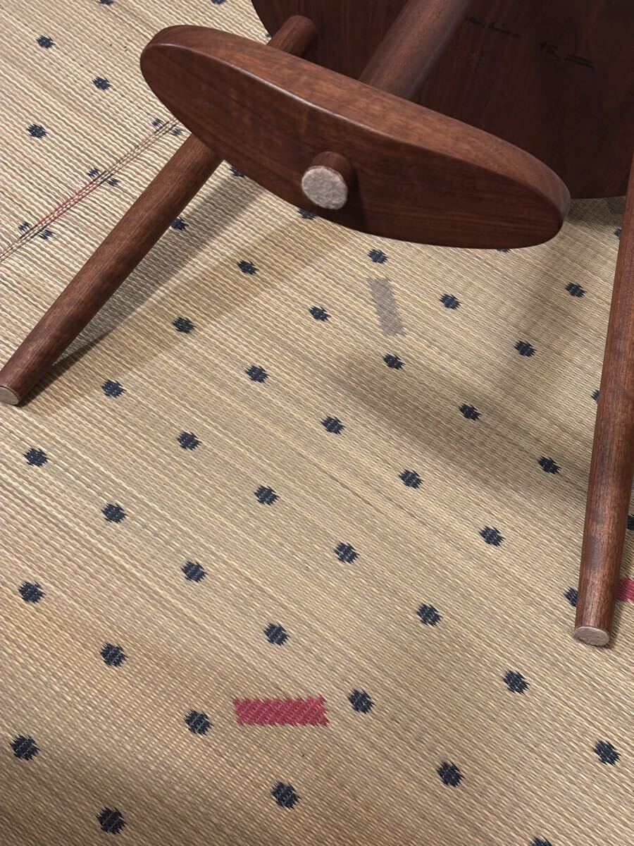ダイニングチェアの座面高さのため、床に足が付くので足置きは必要ありませんが、足置きを使ってみても不思議と落ち着きます。