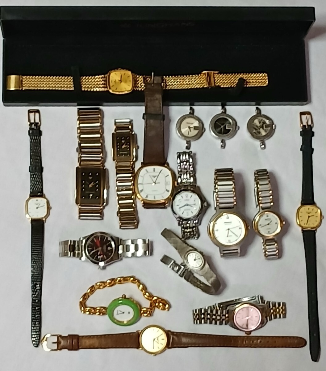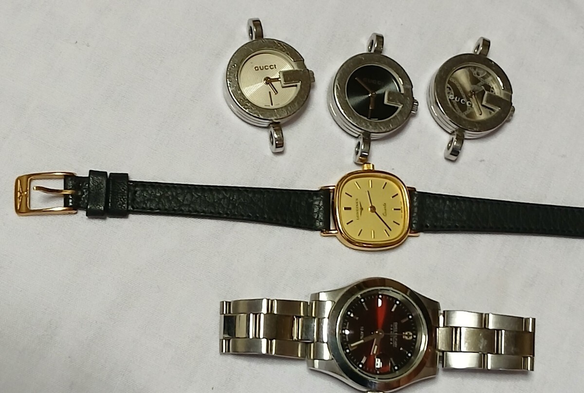 まとめ売りレディースメンズ腕時計グッチチェンジベゼル、LONGINES SEIKO ロンジン ジャンク品 古いですけど比較的綺麗な時計もえります。動いてる時計もありめすけど、電池切れの時計もあります。動いている時計も電池の残量不明です。 あくまでも、中古品のジャンク品ですので、ご理解の上で購入よろしくお願い致します。