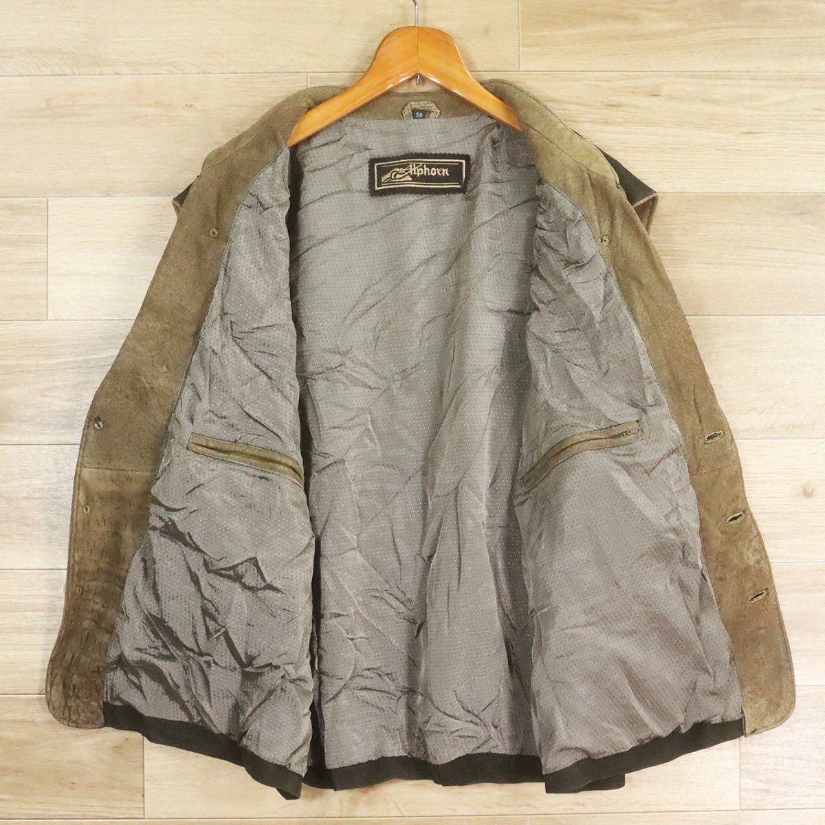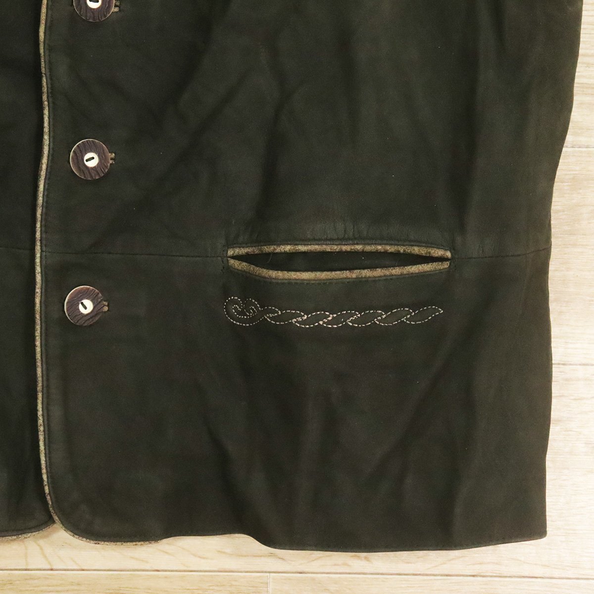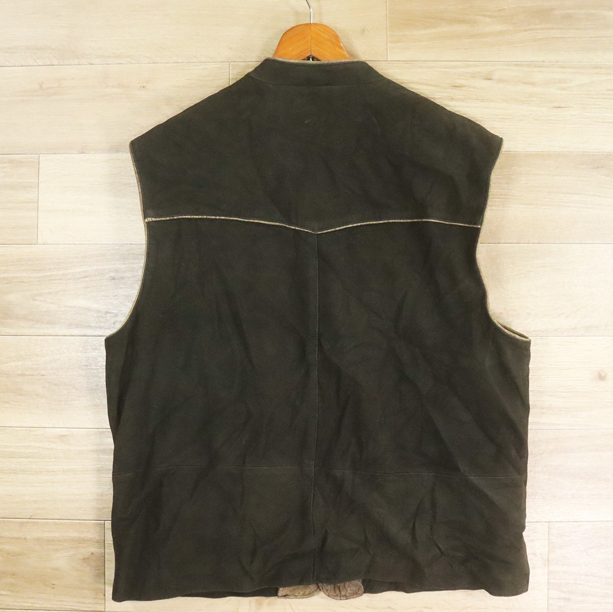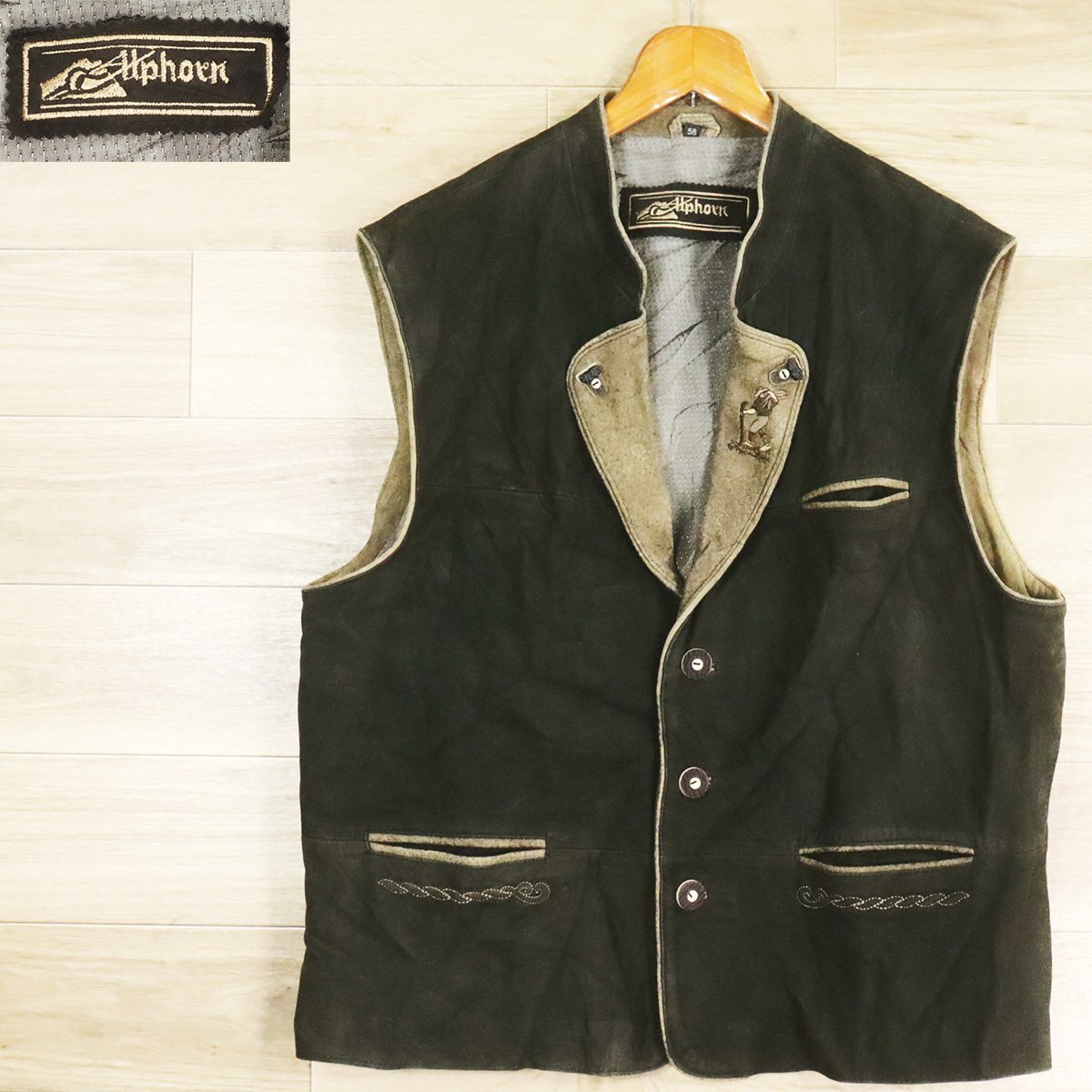 Z3R/O10.17-6 ユーロ古着 Alphorn チロリアンベスト 本革 ヌバック レザーベスト 革ベスト 皮ベスト 刺繍 58 メンズ