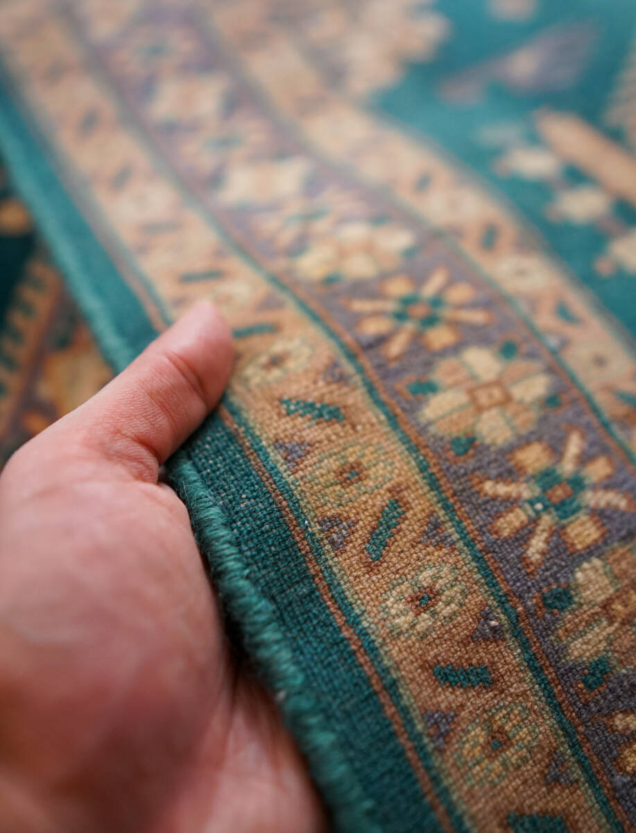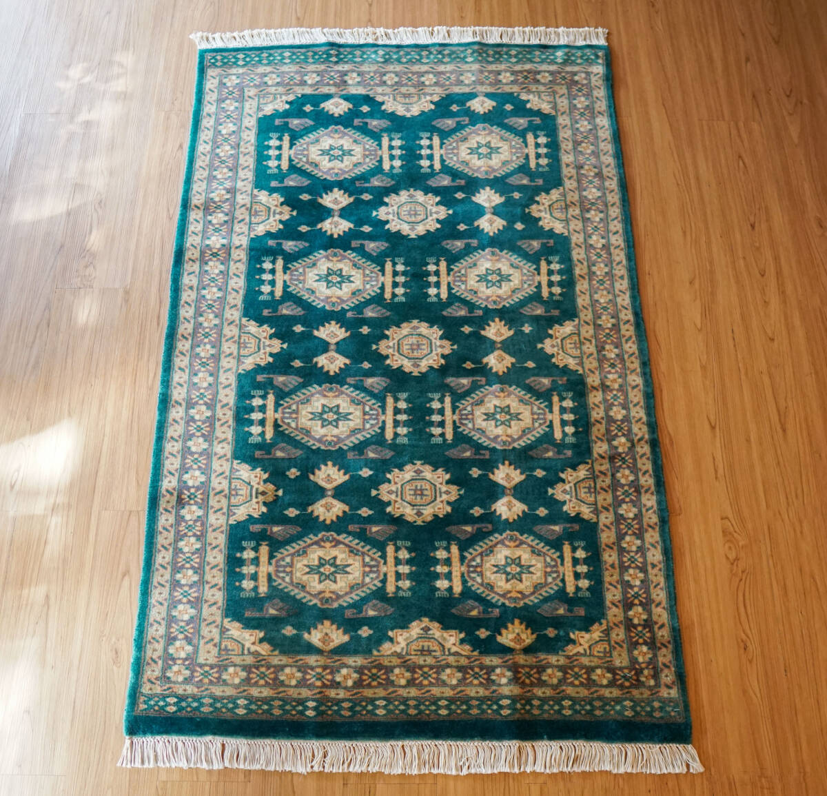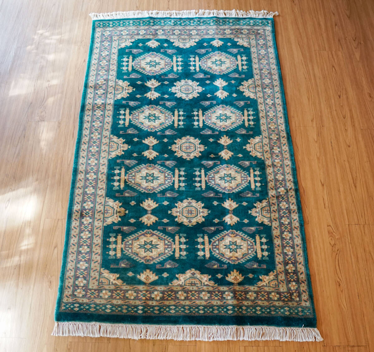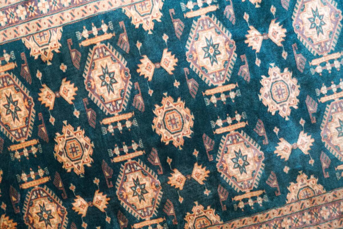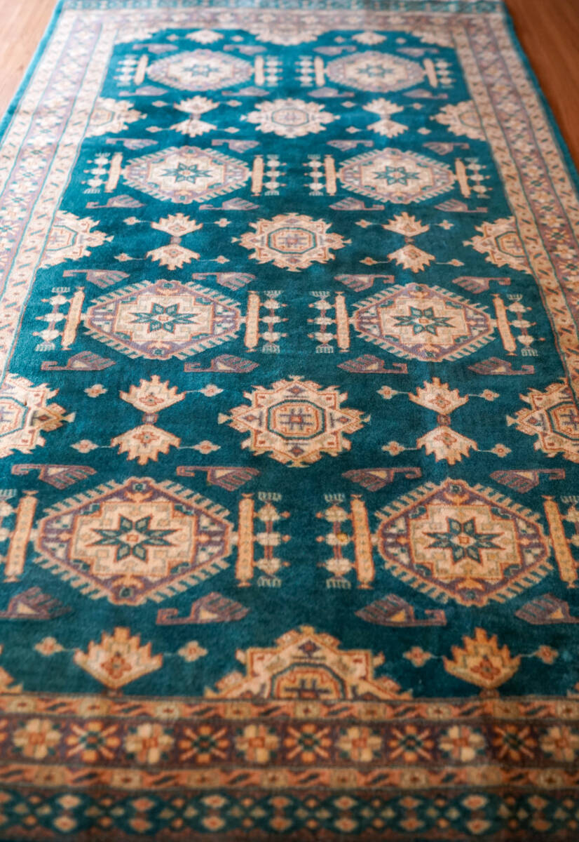 ニュージーランド産の上質なウールを使用し、信頼できる熟練した職人が手織りしたパキスタン絨毯です。ウールはタンパク質をたくさん含んでいるためハリ、艶に富んでいます。肌触りはなめらかで柔らかく、弾力のあるパイル地が底冷えを防ぎ足元を快適にします。