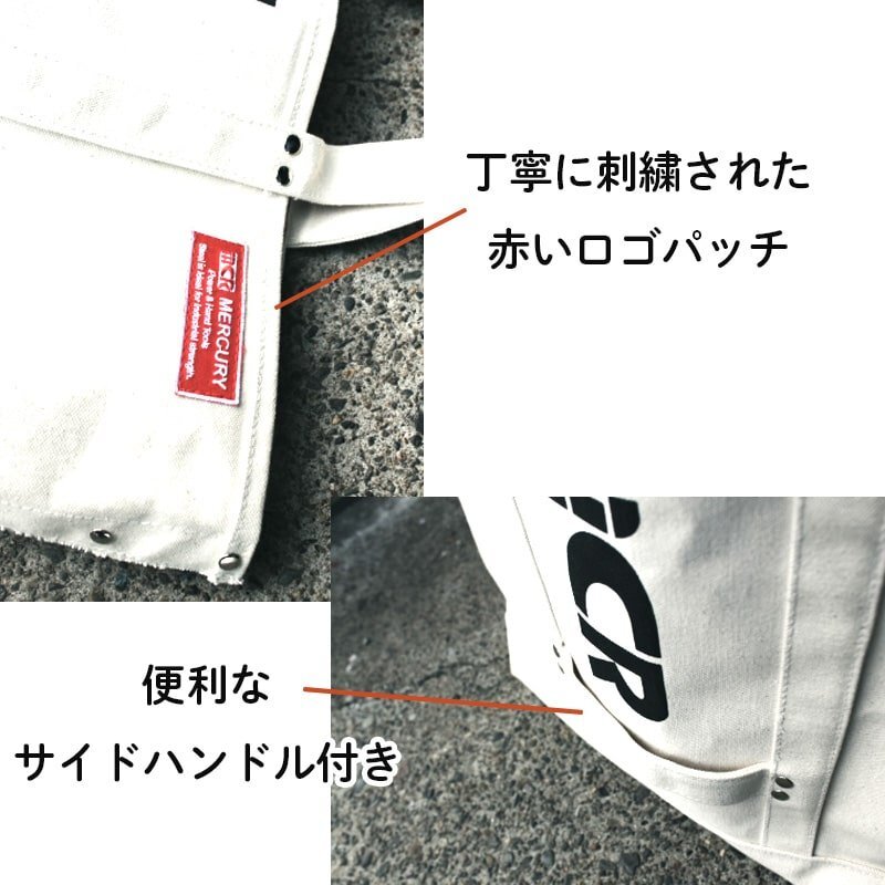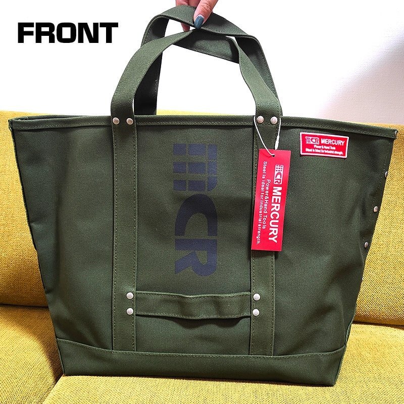 「マーキュリーハードキャンバス トートバッグ L」 マーキュリーの大きめサイズのキャンバストートバッグです。 24オンスの厚手キャンバス生地を使い、堅牢な作りのためハードにお使いいただけます。 大容量設計でありながら、そのスタイリッシュな外観はお買い物など普段使いにもぴったり。 サイドには、ハンドルがついているので、重いものを入れても持ち上げやすいです。 また、両面柄違いとなっており、丁寧に刺繍されたロゴパッチやホックデザインなど隅々までおしゃれなこだわりを感じられます♪ 普段使いにはもちろんのこと、旅行やキャンプなどアウトドアでも活躍すること間違いなし! プレゼントにもいかがでしょうか? |