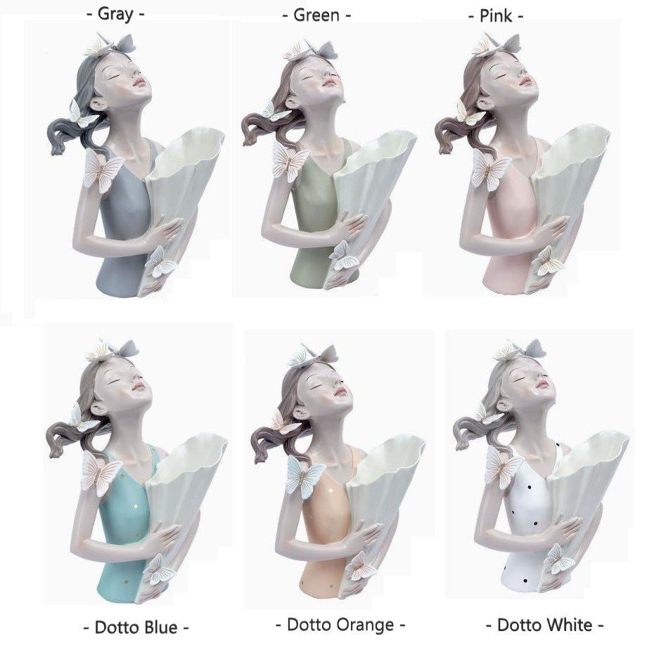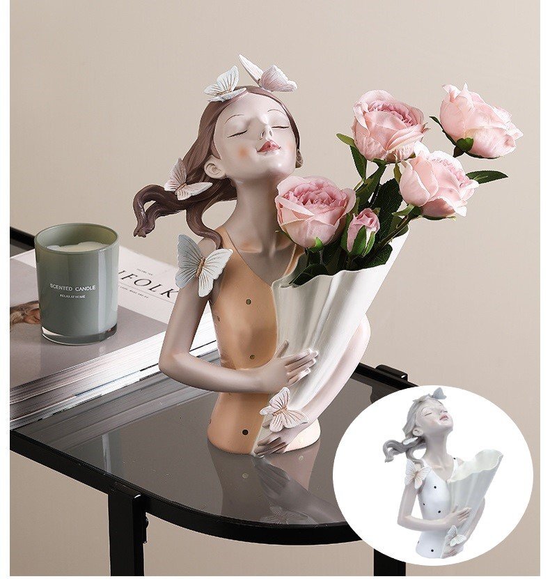 花瓶 花束を抱える少女 ドッドホワイト 樹脂 花瓶 モダンアート花瓶 オブジェ インテリア 小物 n938