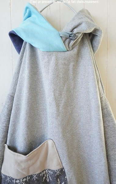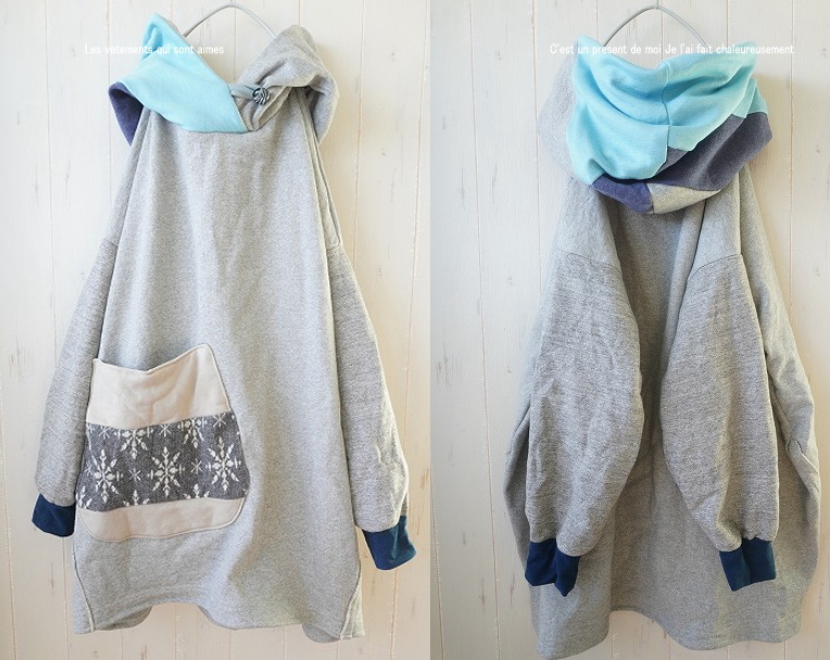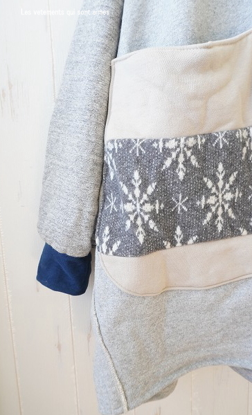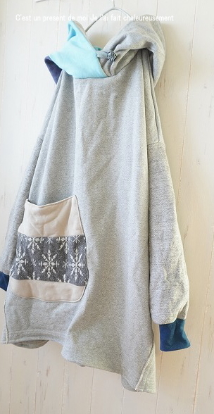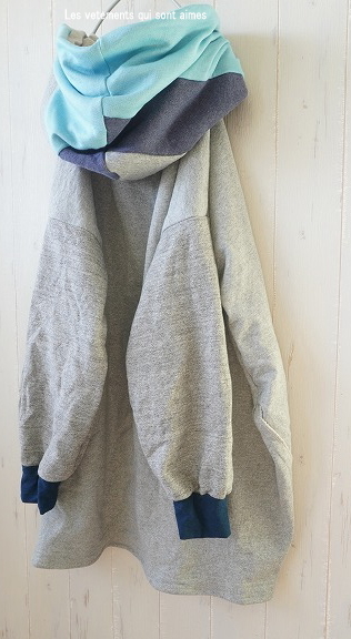 | * 冬ものニットの発送について 2枚同封の場合80サイズ料金になります。 下記にてご確認ください。 *お品もの詳細* 少し厚みのあるコットングレー裏毛ニット生地です。 たまごシルエットで裾を絞ったスッキリデザインです。 裾幅下記にて確認してご入札ください。 首にぐるっと回る大きなパッチフードを 中心で重ねてヴィンテージボタンで留めました。 右脇にパッチポッケを一つ縫い付けています。 袖は長めのドロップショルダー 袖は裏起毛ニットを合わせています。 **サイズ**(平置きでの採寸です) 着丈 約73cm~約76cm 身幅 約67cm 裄丈 約80cm 裾幅 約58cm |