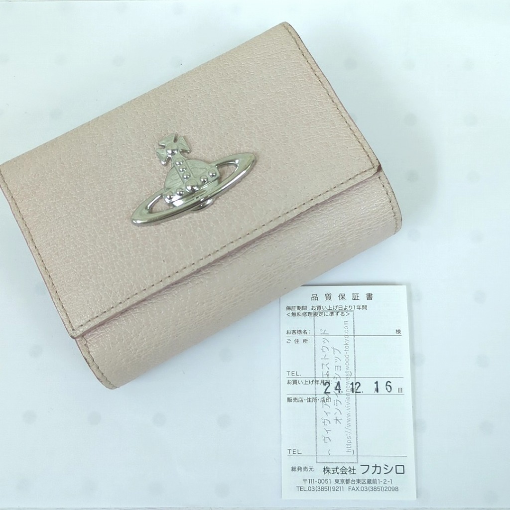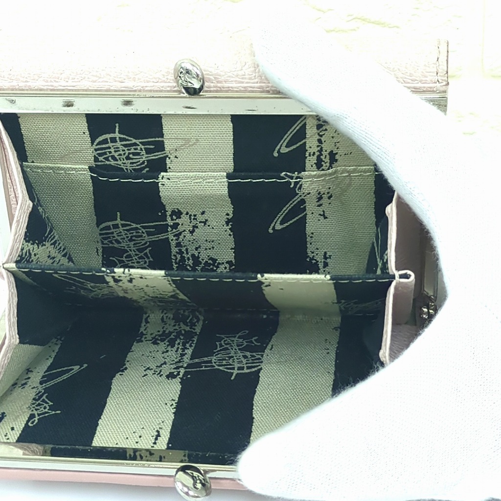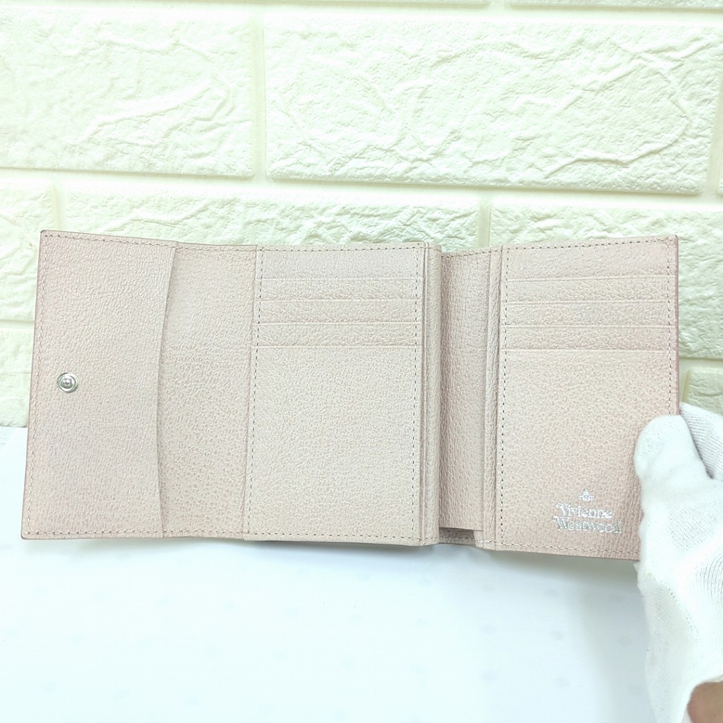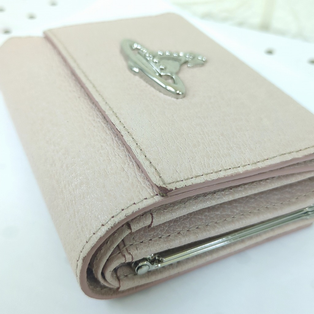 1001-40-800Oji Vivienne Westwood ヴィヴィアンウエストウッド 三つ折財布 ピンク レザー牛革 【コンディション】 サイドに小傷やレザーの剥がれあり。外側のレザーに少し汚れあり。 がま口ポケットに少し汚れあり。他のポケットはキレイな状態。 中古品ですので写真の状態をよくご覧ください。 【サイズ】 縦9.5cm、横12.5cm、奥行3.7cm 多少の誤差はご了承ください! 【ポケット】 カード入れ x8、スモールポケット x5、お札入れ x2、 がま口ポケット x1(内仕切りあり、収納箇所4) 【付属品】 なし