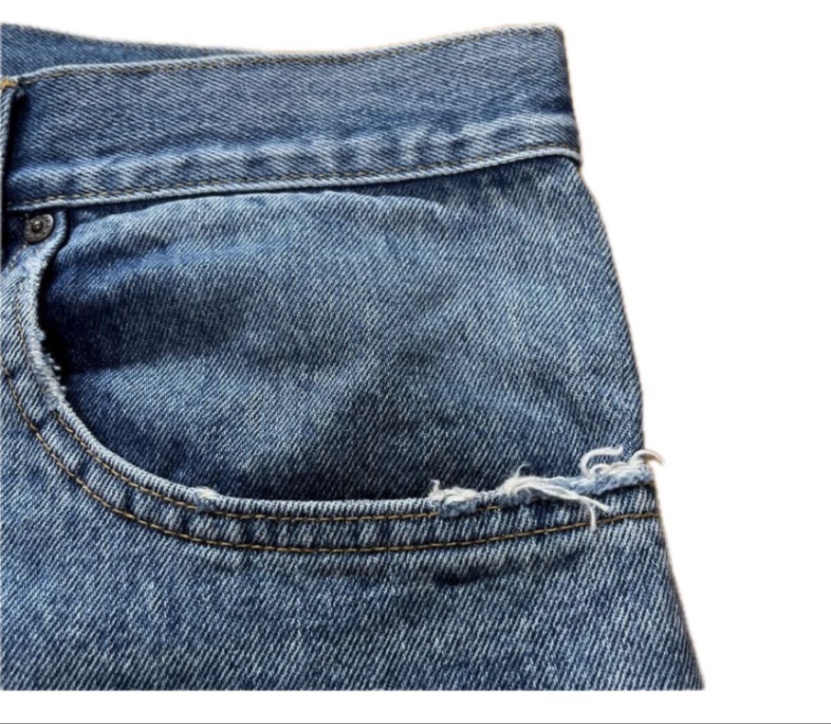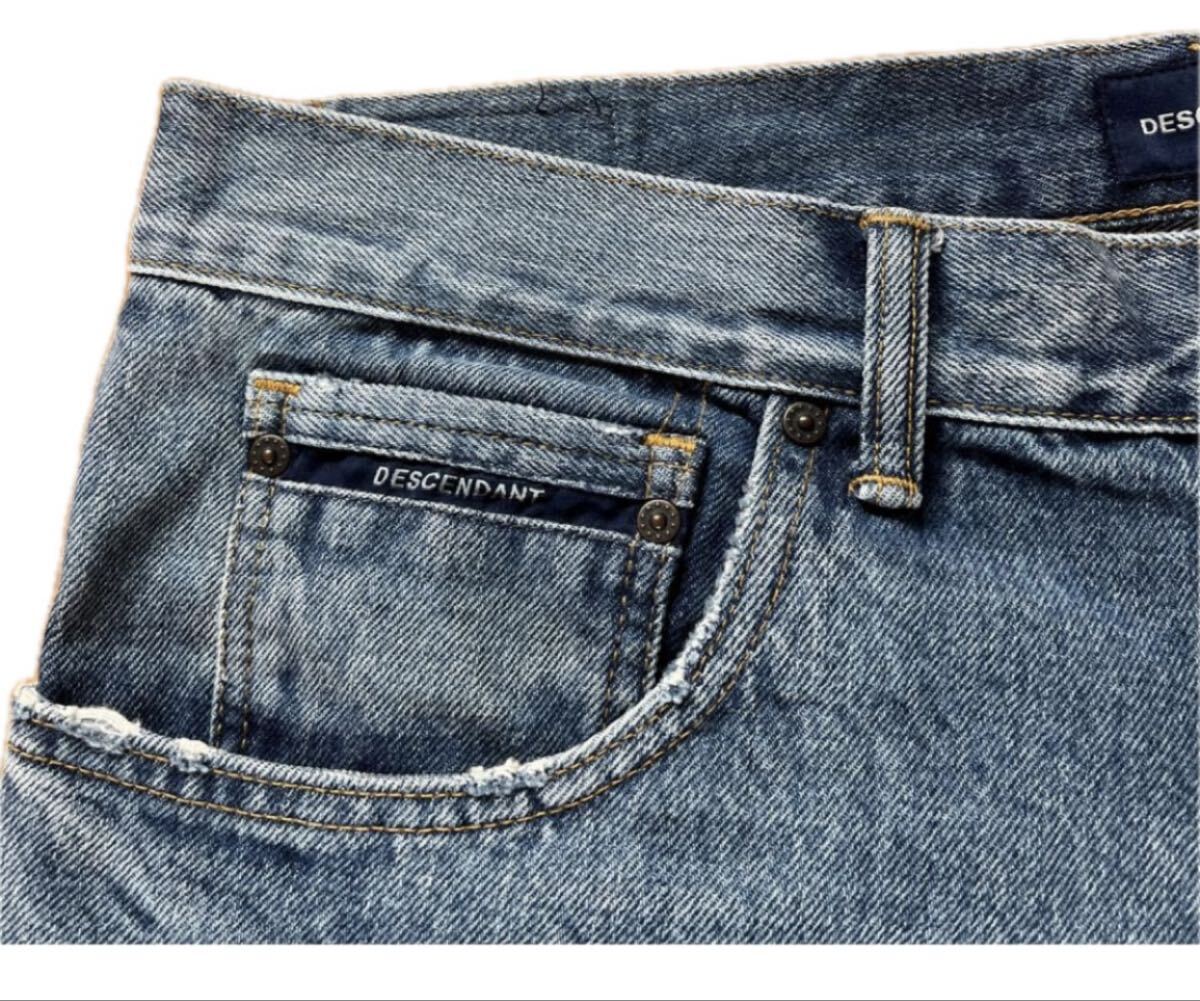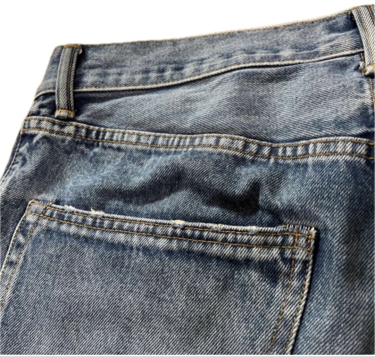 太もも部分やポケットのダメージは元々の加工です。やりすぎず上品です。裾上げはチェーンステッチで仕上げてあります。画像でご確認ください。使用はほぼ無く状態もとても良いので長さが合う方はぜひご検討お願いします。