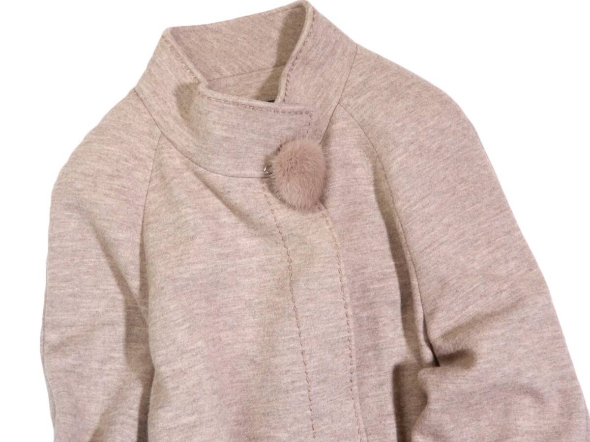 素材は 表地 毛98 ナイロン2 裏地 ポリエステル100%です。飾り部分(毛皮使用) ミンク