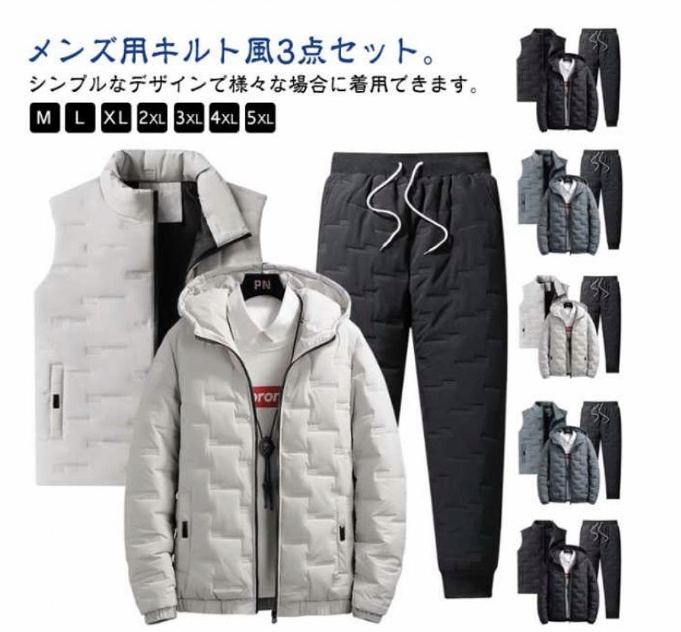 3点セット 色可選上下セットメンズ キルティング キルティング 防寒着 スポーツウェア 暖かい 中綿ベスト 厚手 ジャケット ダウン風 パンツ