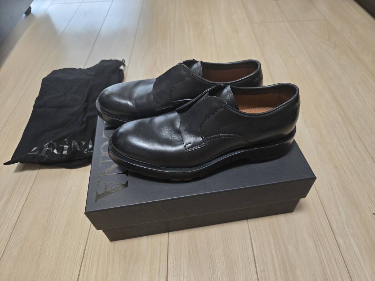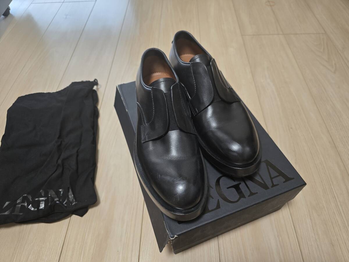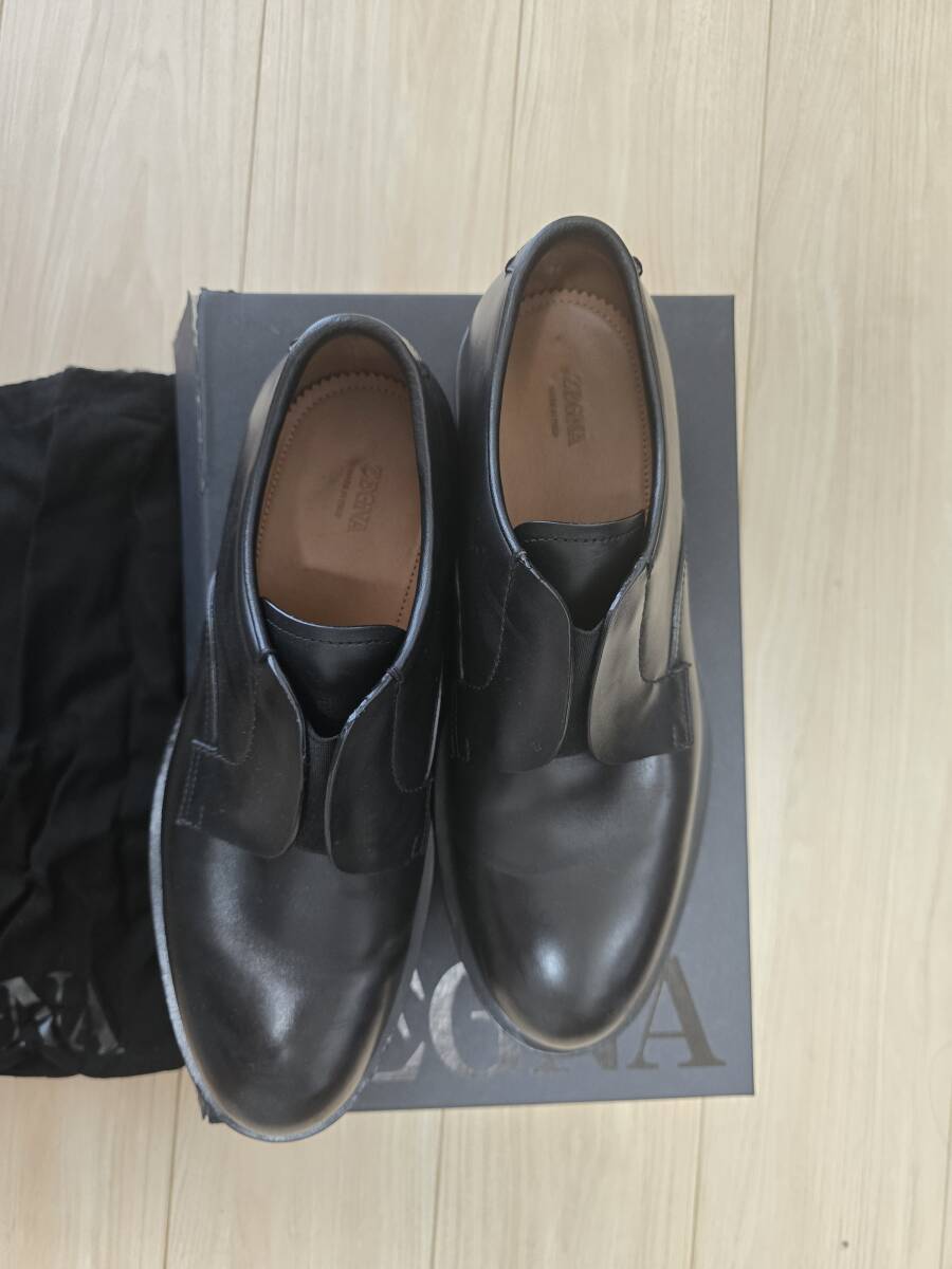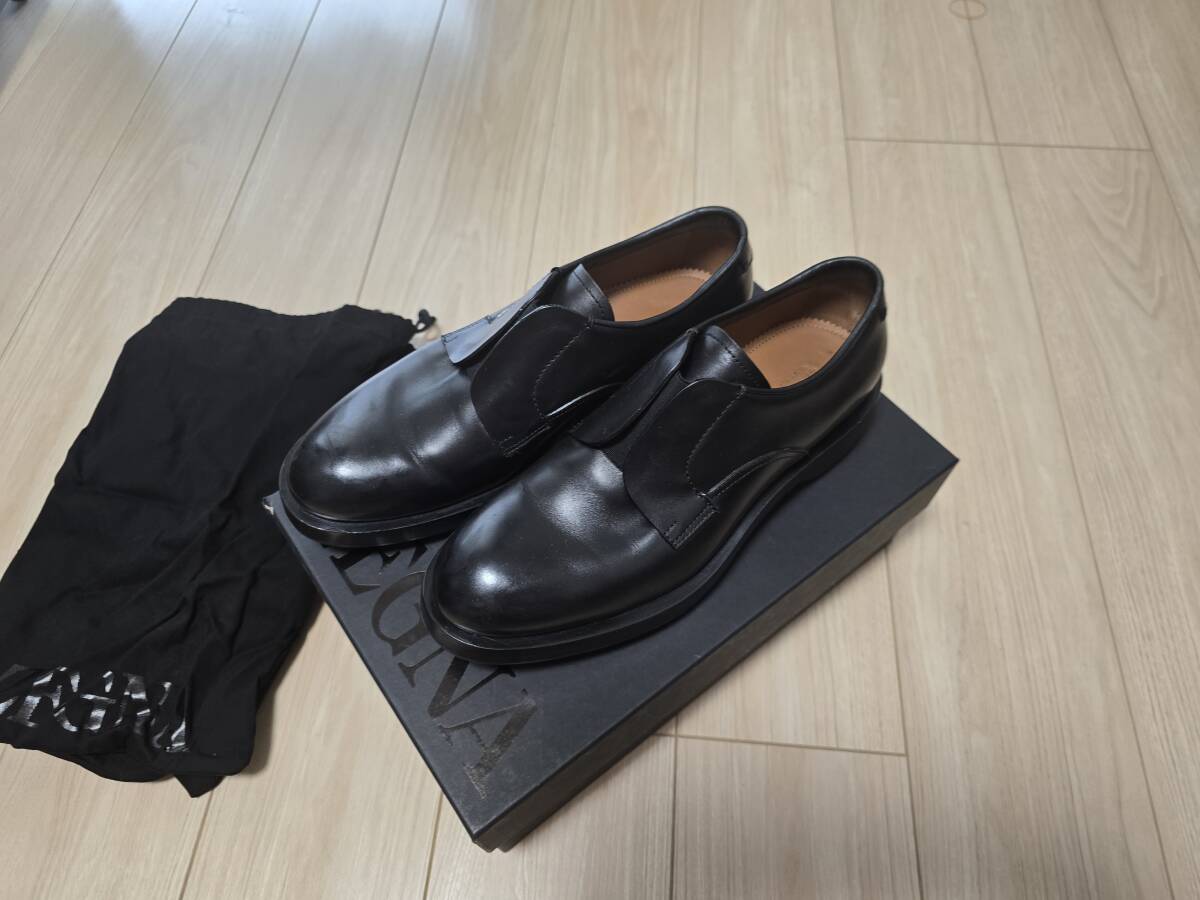 一度のみ使用美品 ZEGNA ゼニア ダービーシューズ 黒 ブラック EU8 26.5 27 ローファー スリッポン 銀座路面店購入