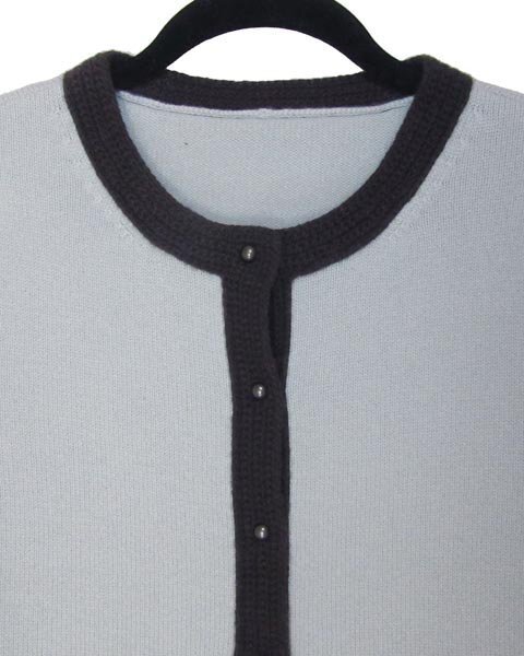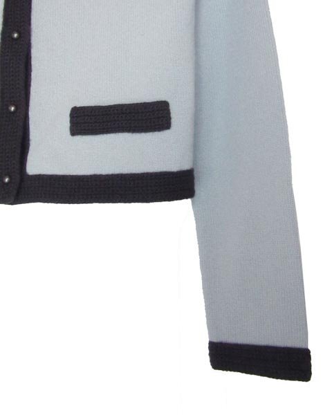 | バイカラーデザインの上品なカーディガン。肌触りの良い高級感のあるカシミヤ素材。ワンピースやフェミニンなスカートなどとのコーディネートが楽しめます。 |