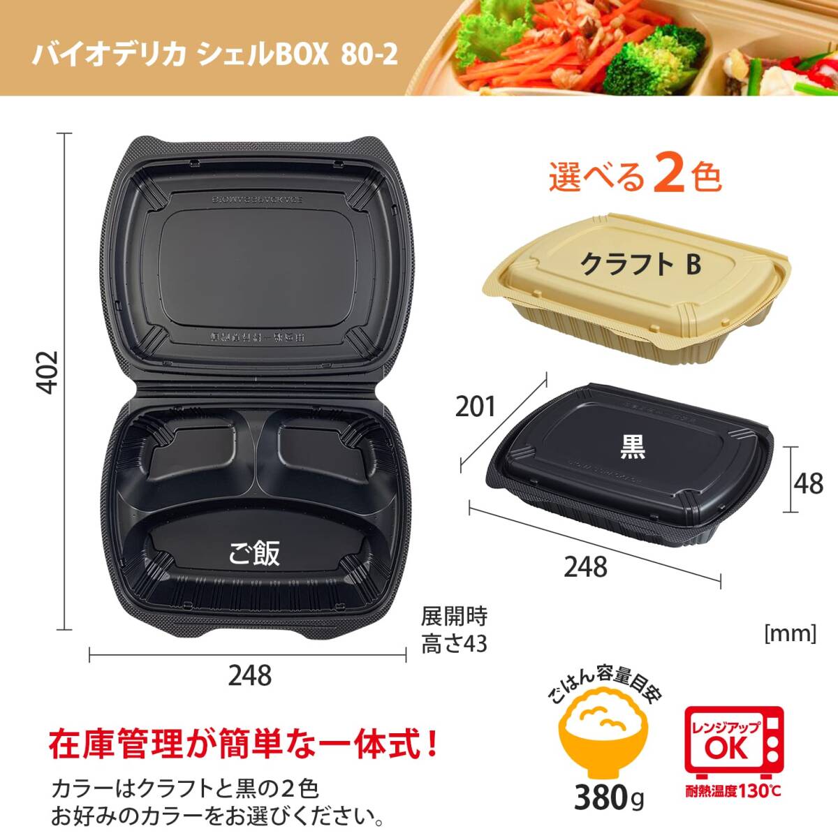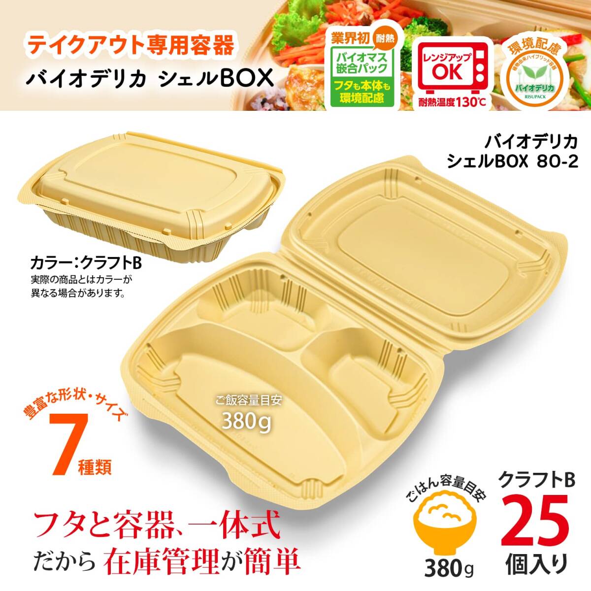 リスパック(Risupack) 使い捨て 容器 デリバリー テイクアウト ランチ 弁当 内嵌合蓋 バイオデリカ シェル BOX80-2 クラフト