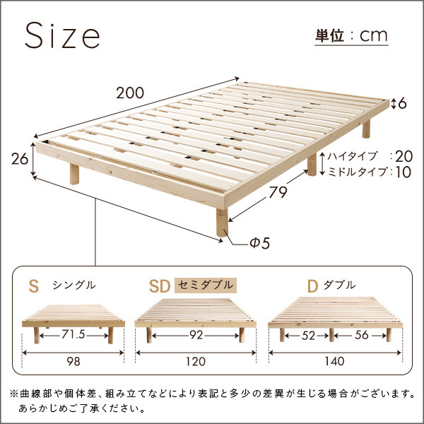 【ポイント】 3段階に高さを調節できる脚付きすのこベッド セミダブルサイズ! 北欧産パイン材はリフレッシュ、消臭、抗菌、防臭効果があります。 安心安全のF★★★★(フォースター)を獲得しました。 静止耐荷重は200kgと頑丈設計です。 通気性抜群で年中快適にお使い頂けます。 ベッドを並べてクイーンサイズ、キングサイズとしても利用可能です。 |