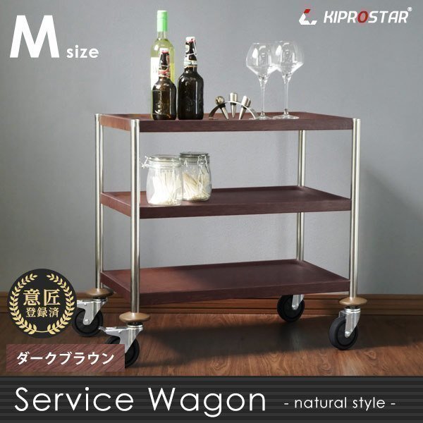 | 即納 木目調ステンレスサービスワゴン ダークブラウン 3段 フラットタイプ M |