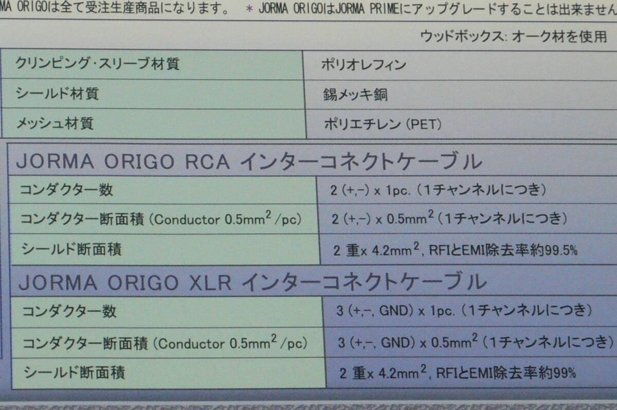 ・JORMA DESIGN(スウェーデン)の RCAインターコネクトケーブル<<ORIGO-オリゴ>>