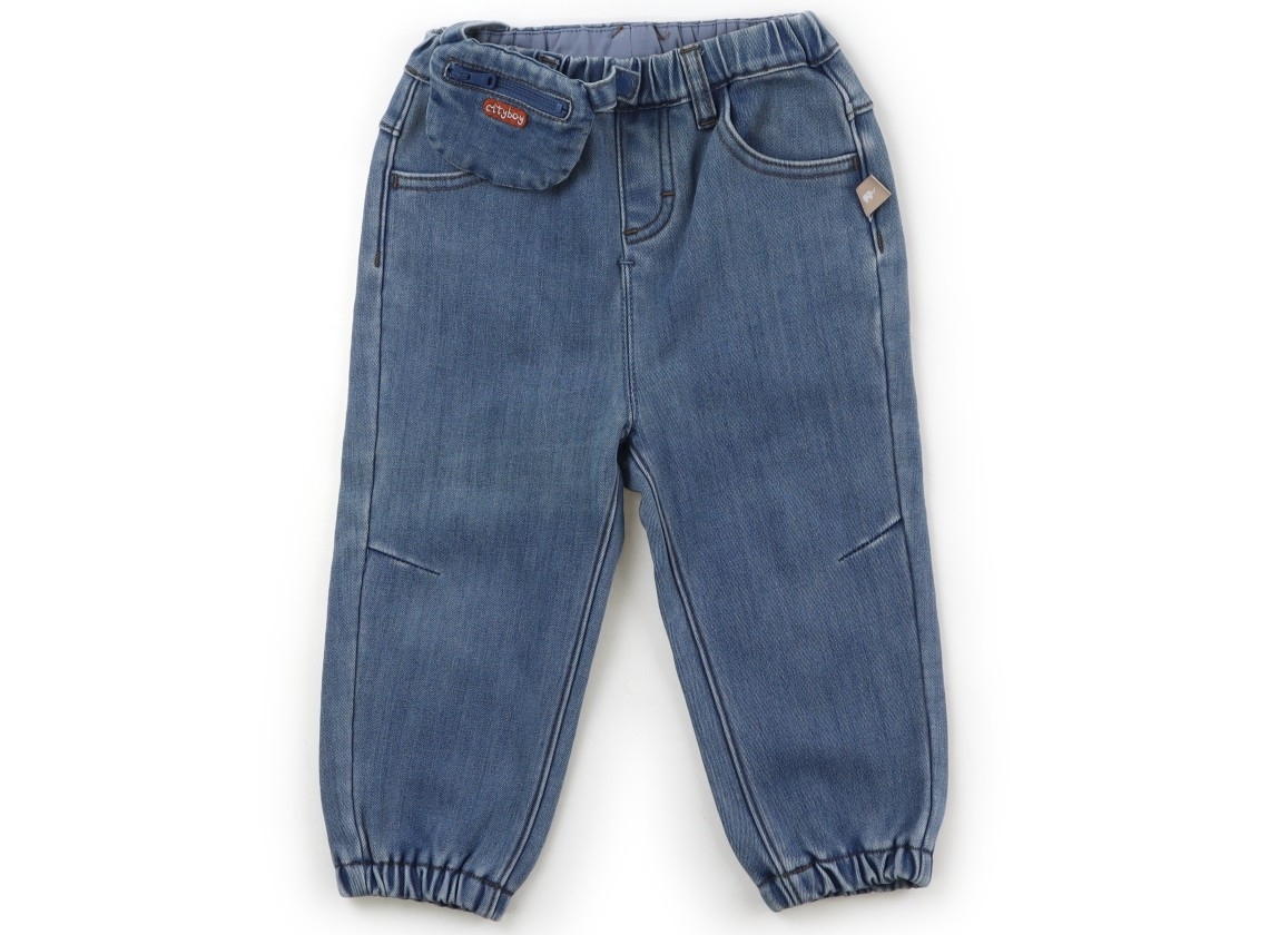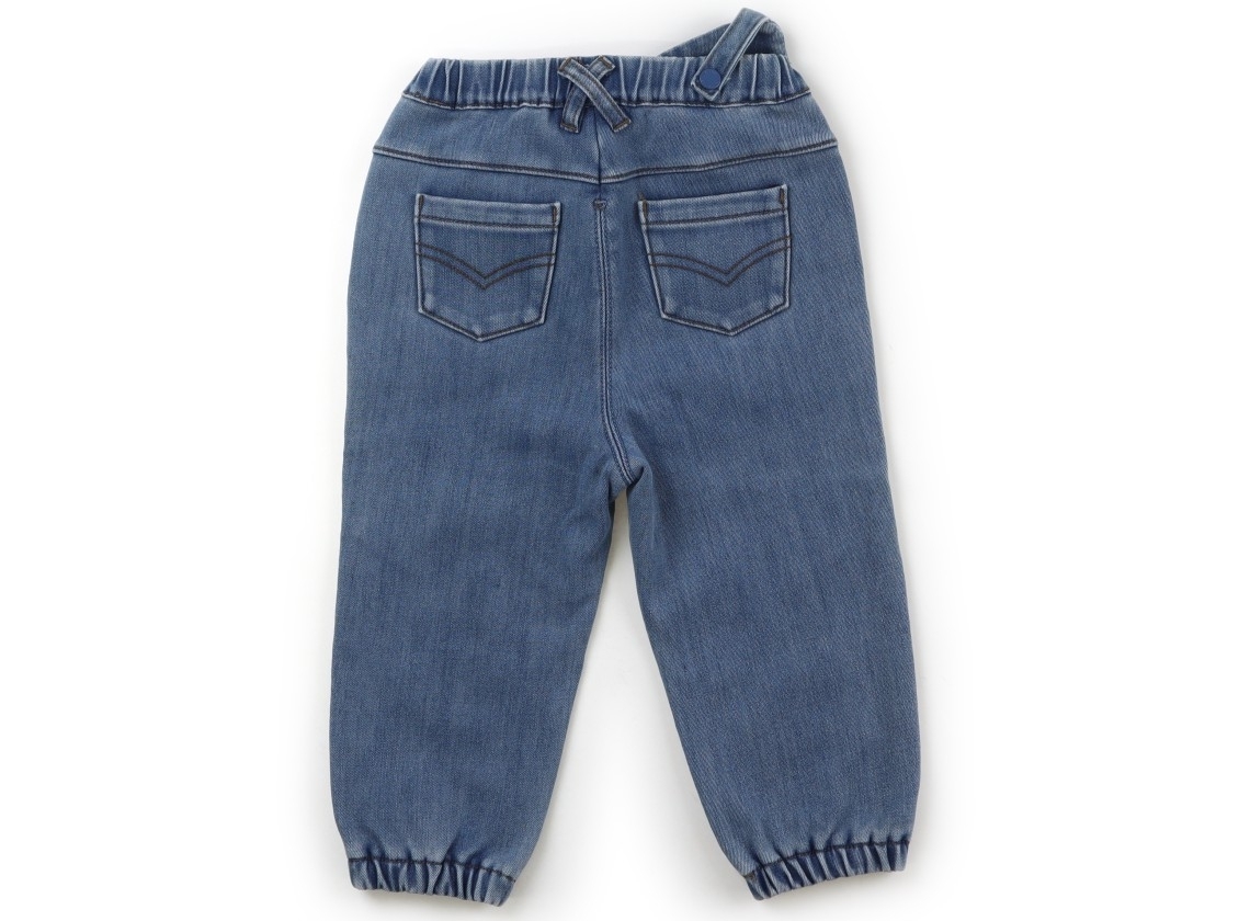 裏起毛カットソーデニム。ウエストは総ゴム。腰につける取り外し可能なポシェット付き。デニムに色落ちあります。まだお使いいただけそうです。