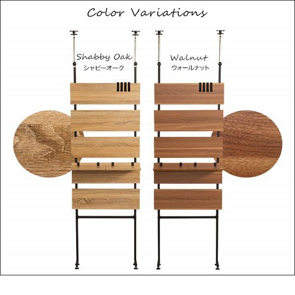 【ポイント】 木目の棚板とブラックスチールが美しいヴィンテージテイストのラダーラックです。 お部屋の目隠しや付属の棚を使い小物を置いたりと様々な使用用途で便利です。 つっぱり式なので、地震などの揺れの際に倒れにくい安心設計。 壁に穴を開けることがないので賃貸でも安心です。 |