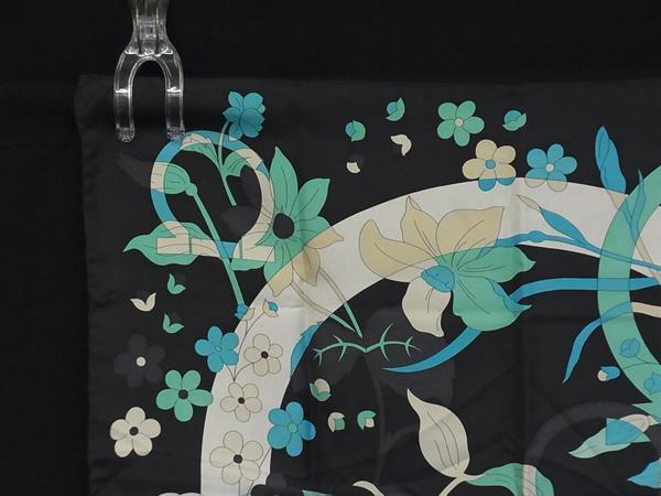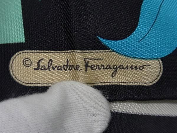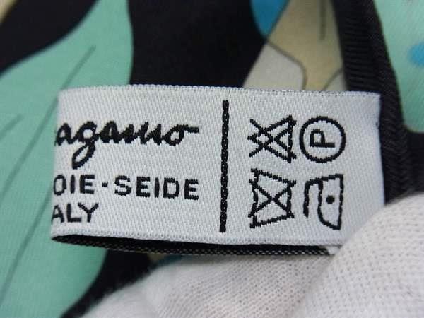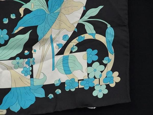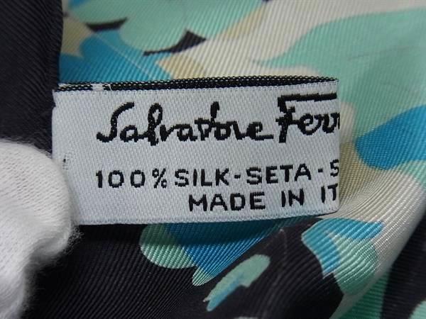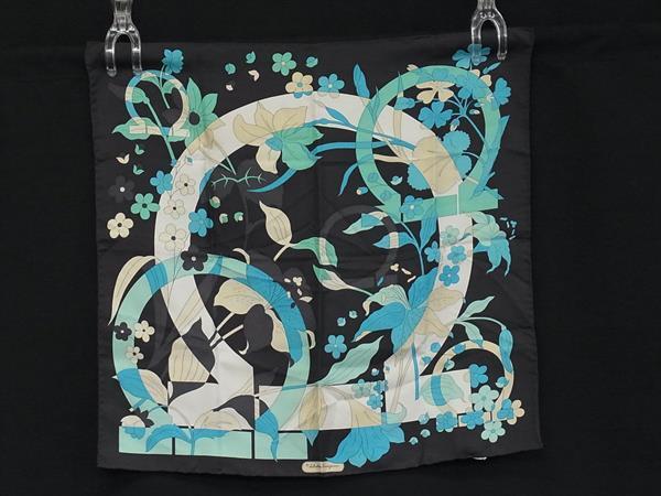 ■極美品■ Salvatore Ferragamo フェラガモ フラワー 花柄 シルク ハンカチーフ ポケットチーフ ブラック系×マルチカラー DJ7564