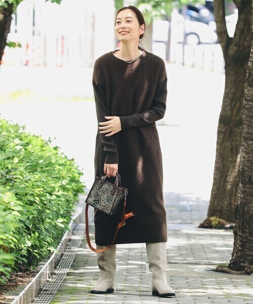 2.8万☆デミルクス ビームス Demi-Luxe BEAMS☆毛100% フラッフィクルーネックニットワンピース☆R-O 6251