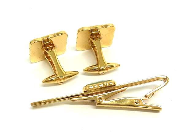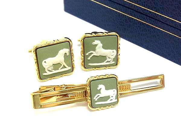 ■美品■ WEDGWOOD ウェッジウッド ジャスパー ネクタイピン タイクリップ カフスボタン カフリンクス 2点セット ゴールド系 DK5102