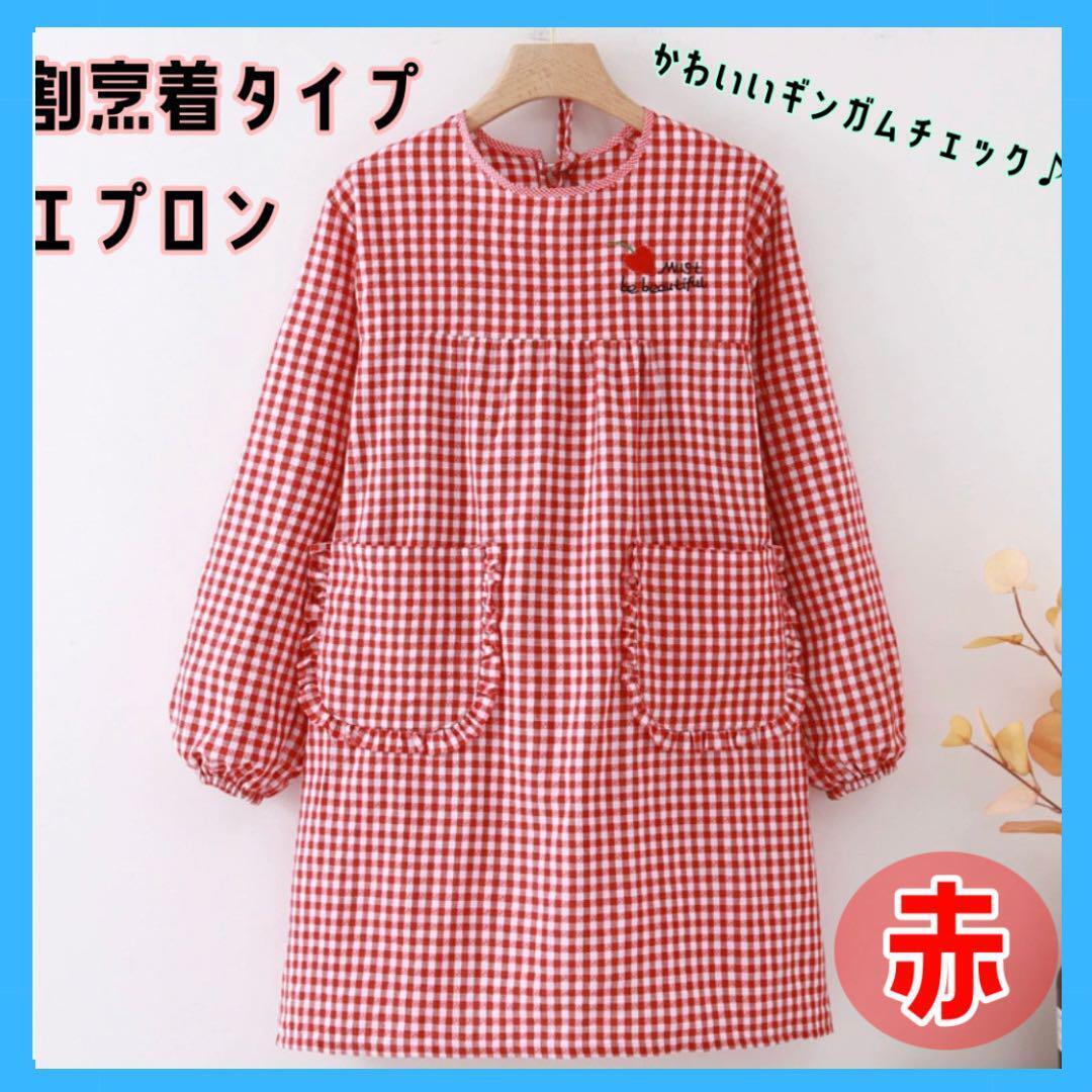 かっぽう着 割烹着 かわいい エプロン かっぽうぎ おしゃれ 長袖 ママ 長袖エプロン 袖付き 料理 家事 カフェ 保育士 母の日 ロング丈 ポケット付き チェック柄 レディース キッチン 保育士 料理教室 大きいサイズ かわいい BBQ 北欧