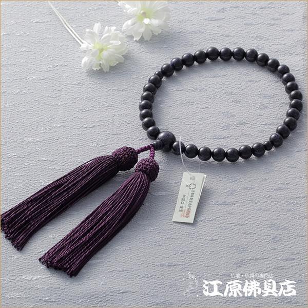 [ゆうパケットOK]紫金石8ミリ共仕立 正絹頭付≪紙箱入り≫シコン色房 B【京念珠/数珠/女性】